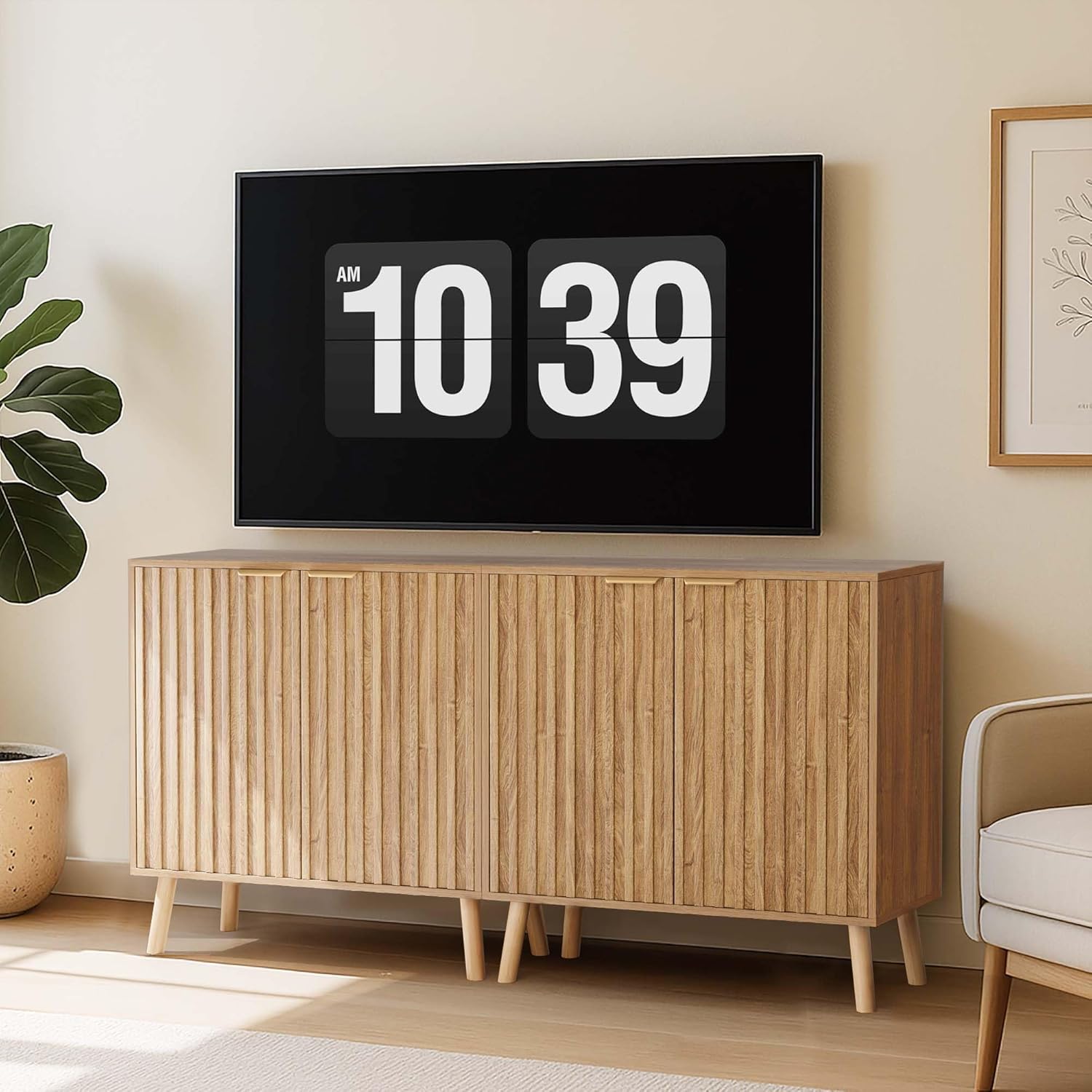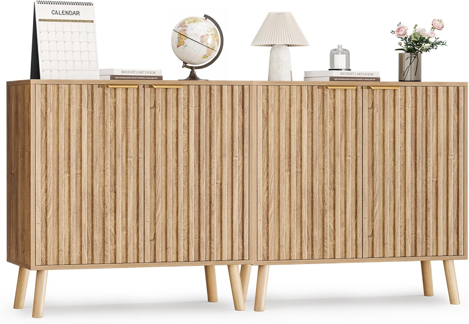 Pamapic Fluted Storage Cabinet, Sideboard Buffet Cabinet with Storage, Wood Credenza with Adjustable Shelves, Modern Accent Cabinet for Living Room, Kitchen, Entryway, Natural(2, Oak)