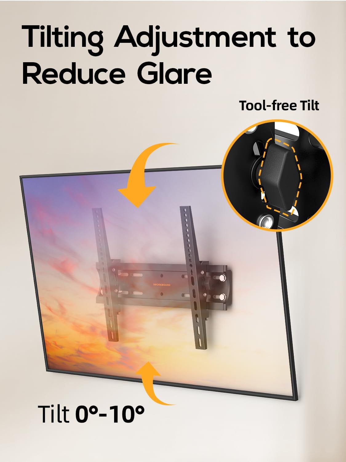 - SPACE-SAVING & GLARE REDUCTION: low-profile TV mount holds your TV just 1.97" from the wall. Features smooth ±10°tilt adjustment to easily combat screen glare and optimize your viewing angle for maximum comfort.