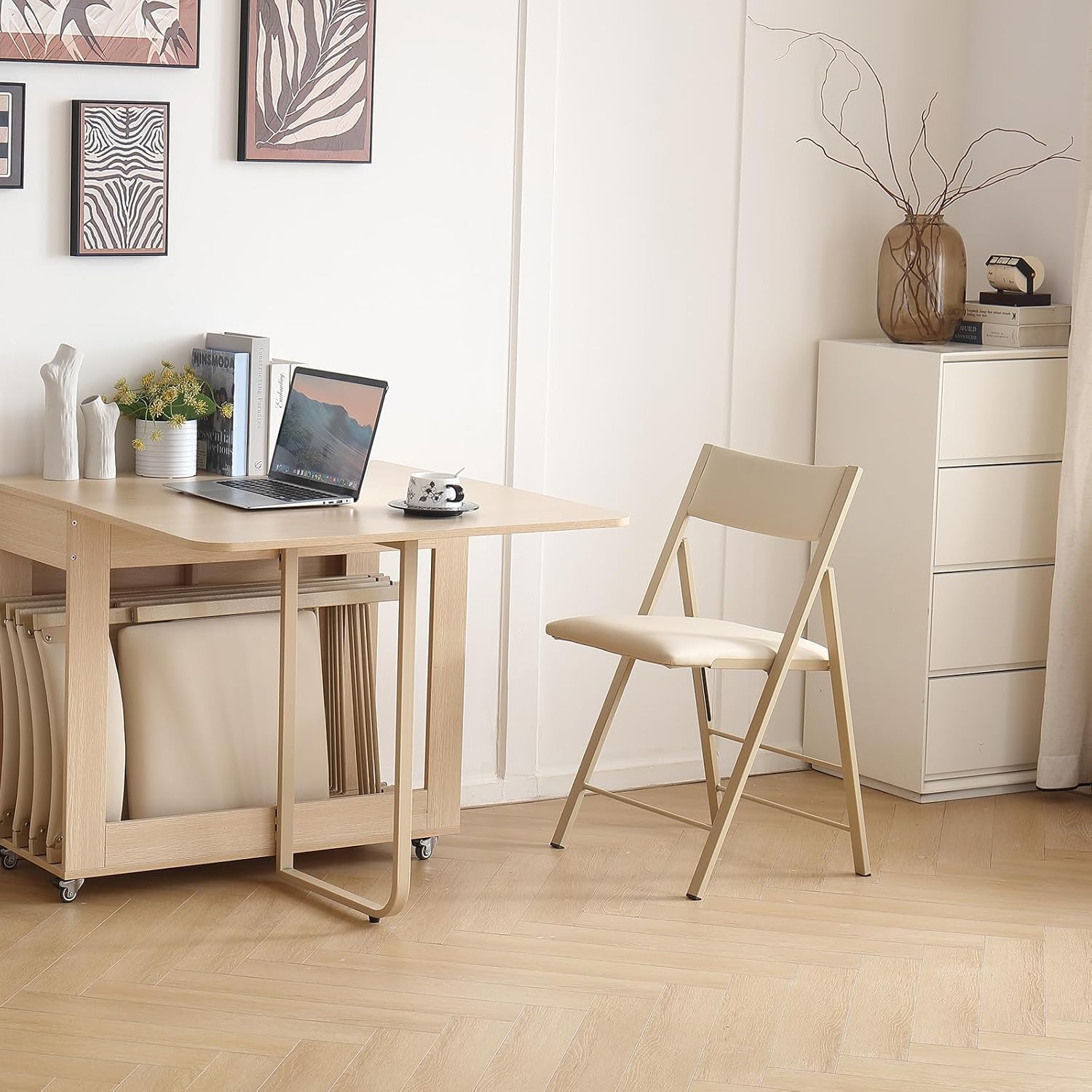 - 【Cloud Padded Seat - 8+ Hour Comfort】 Thicker than typical metal folding chairs, our metal folding chairs with cushion use high-resilience comfortable sponge + waterproof leather. Ergonomic curve fits dining tables perfectly, reducing hip fatigue during extended meals – why choose hard stackable folding chairs when comfort matters.