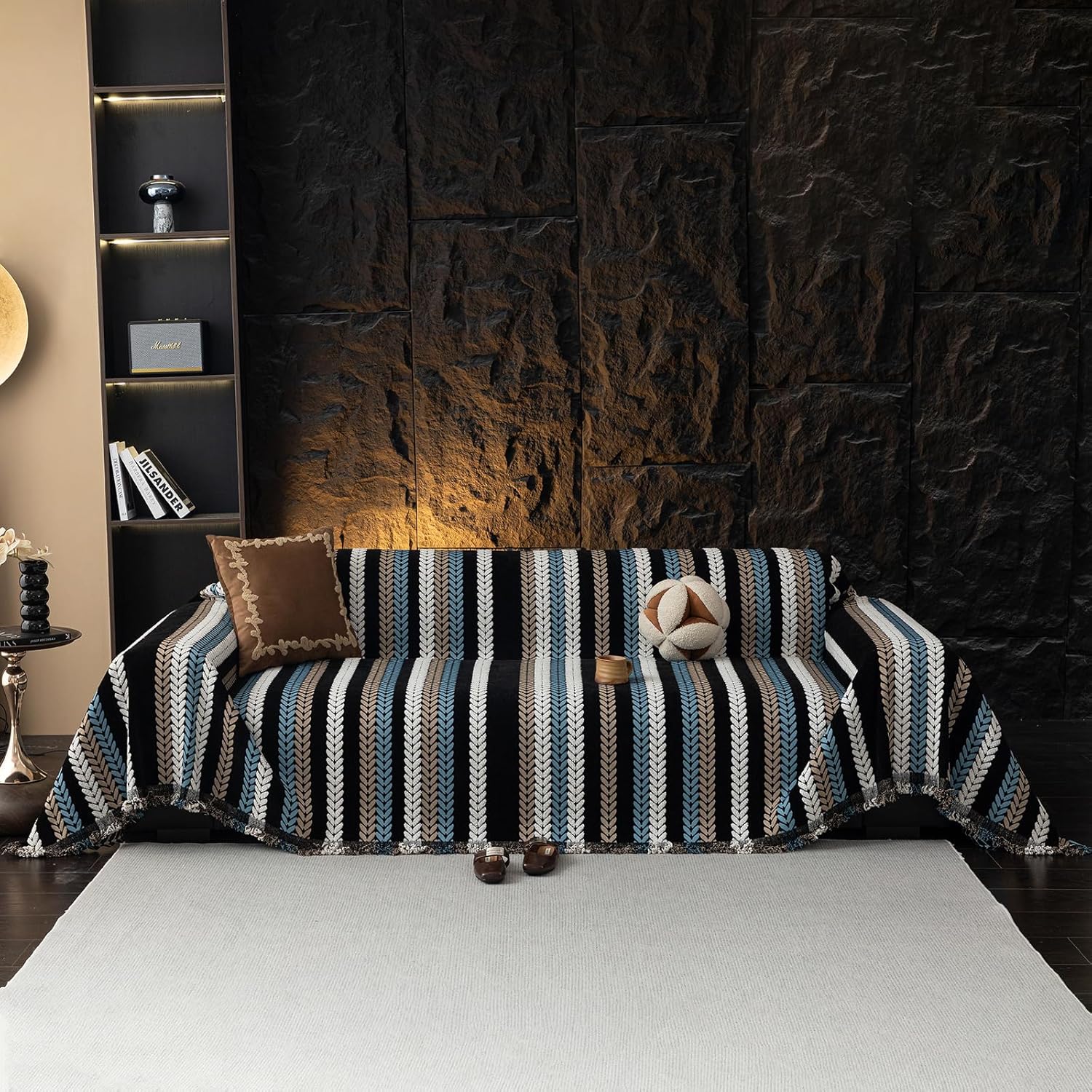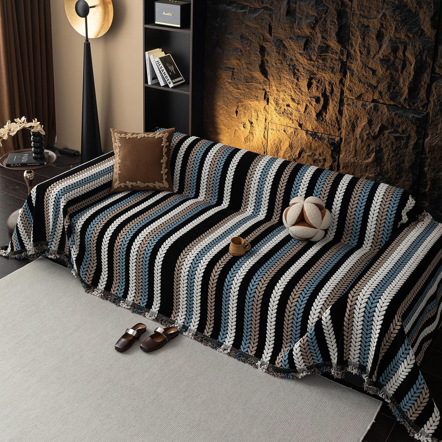 - γππππππππππ & ππππππππππ γDual - Purpose Function**: It shields your sofa from stains, pet fur, and scratches, while instantly elevating your living space with a chic, retro - luxury aesthetic. The herringbone pattern and neutral - toned stripes complement various interior styles, from modern to classic.