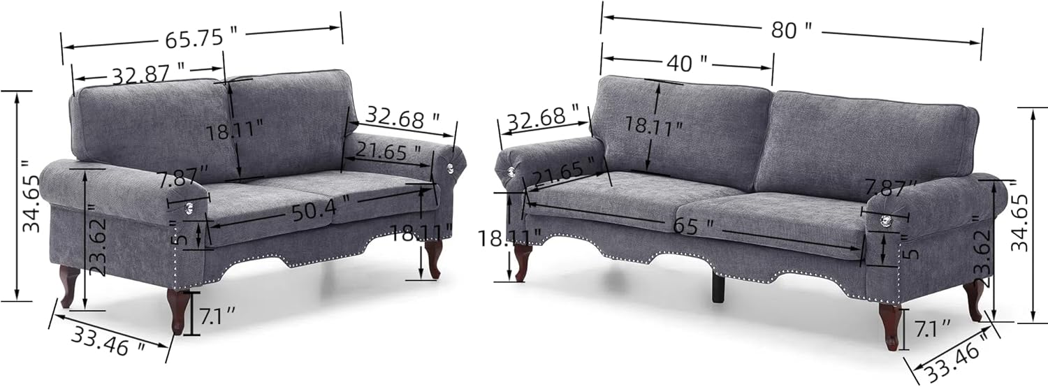 - Product Dimensions : 32.68"D x 80"W x 34.65"H
