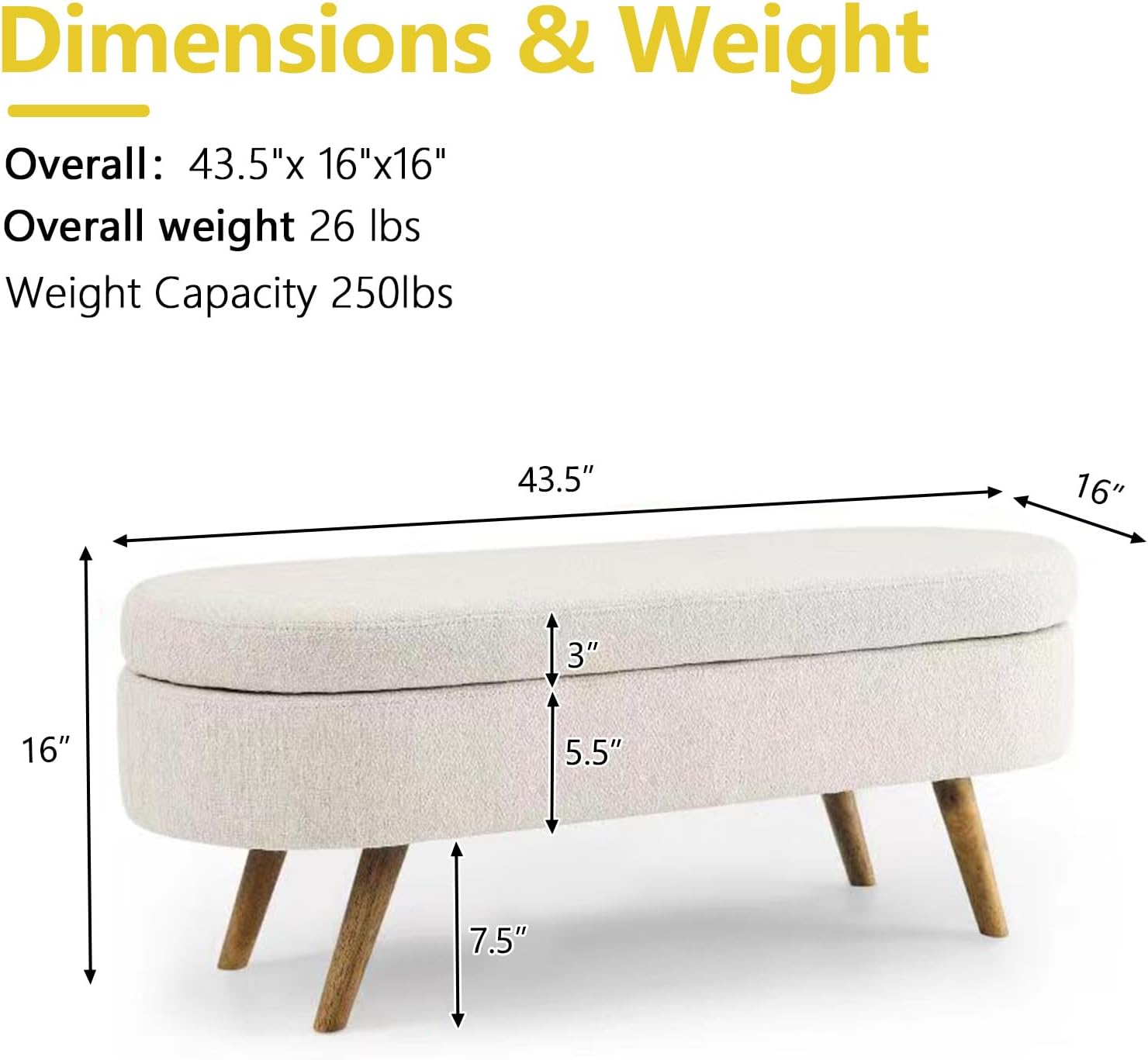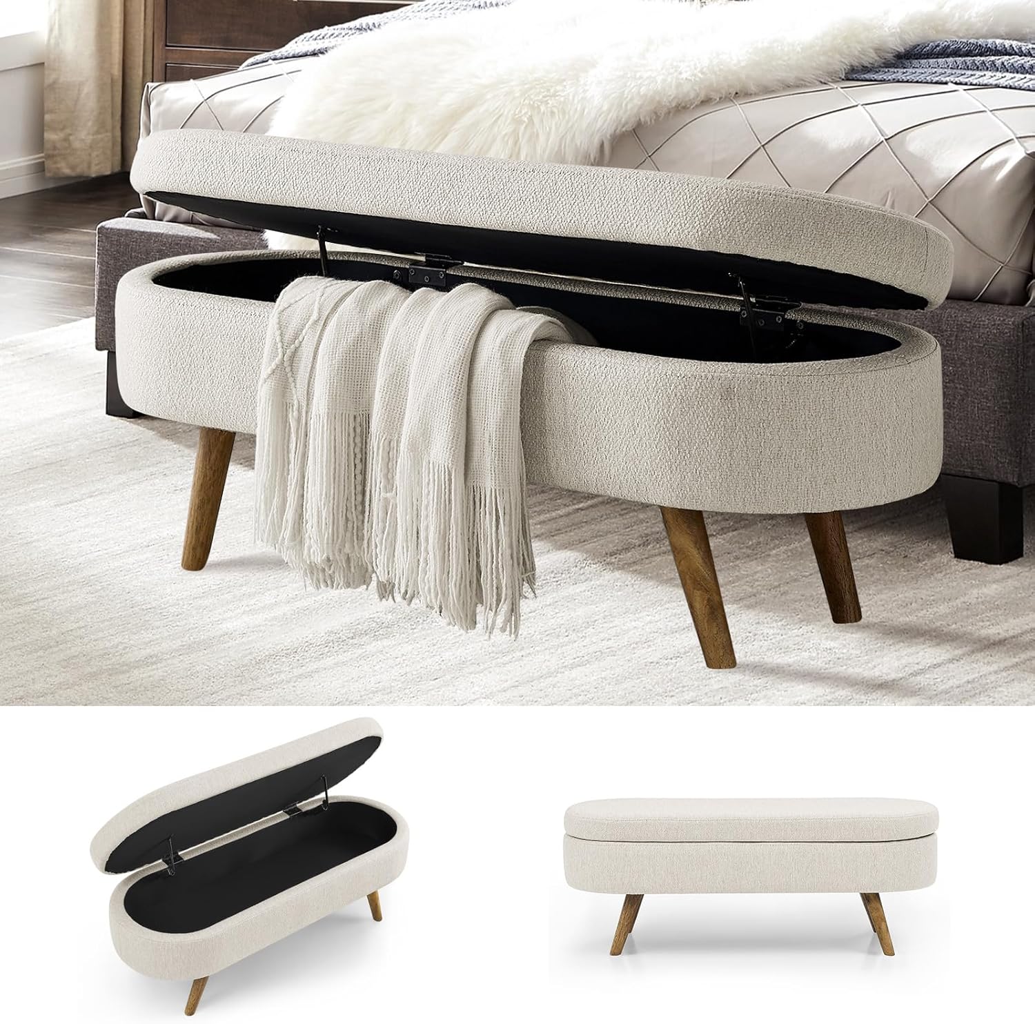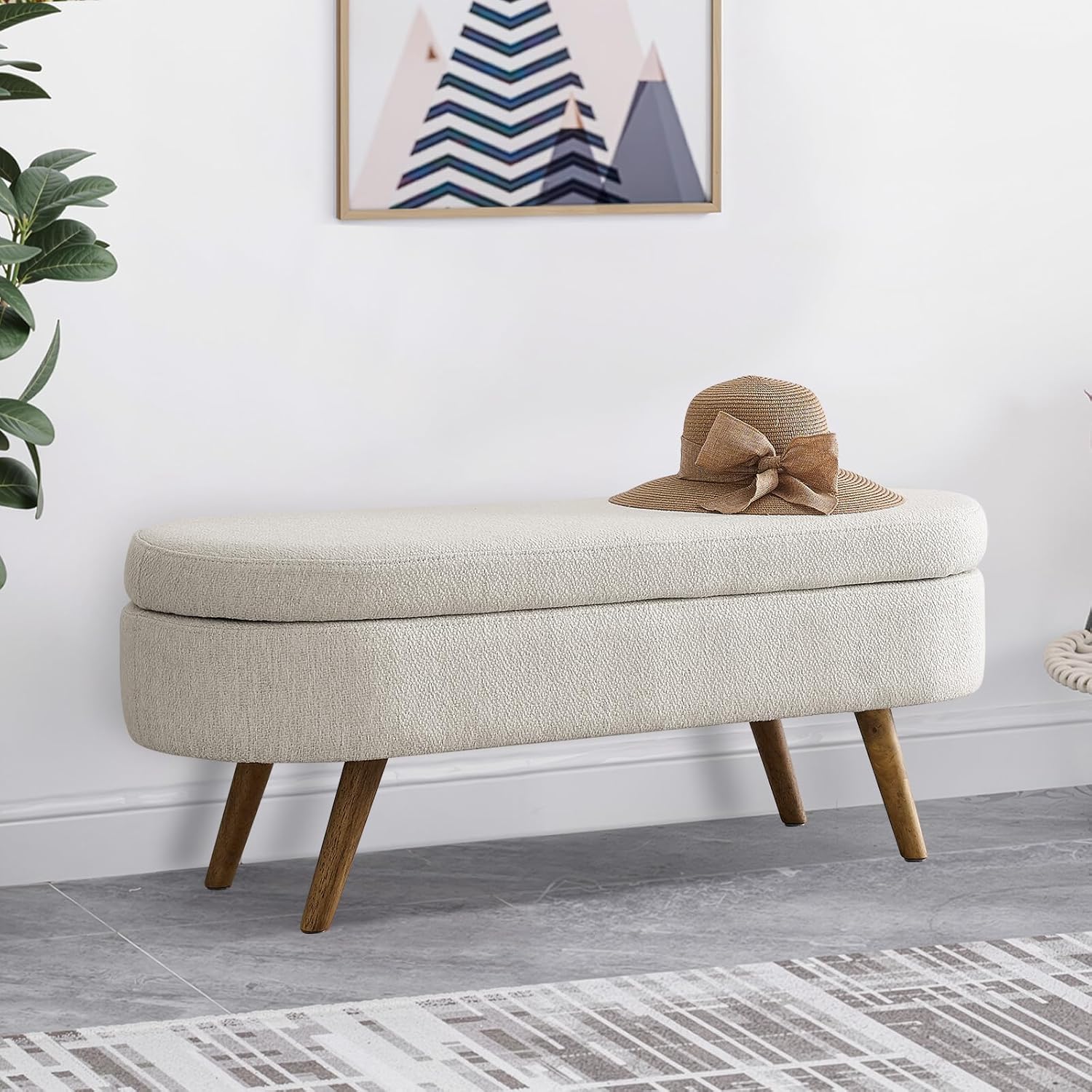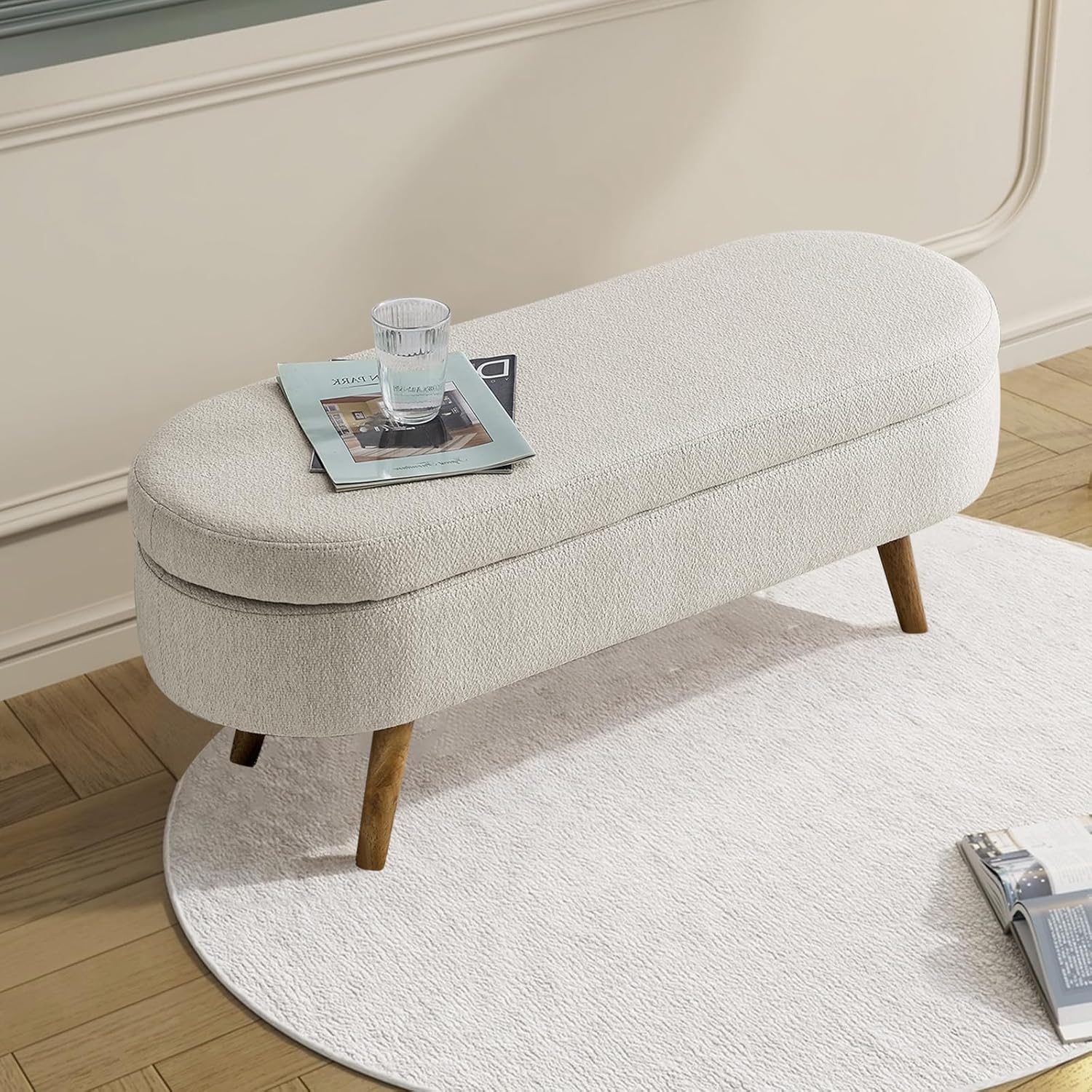 - [Versatile Design for Any Space] Use this bench for bedroom end of bed, as a storage ottoman, or entryway bench. Its oval silhouette and neutral beige tone add warmth and sophistication to small spaces or larger rooms alike.