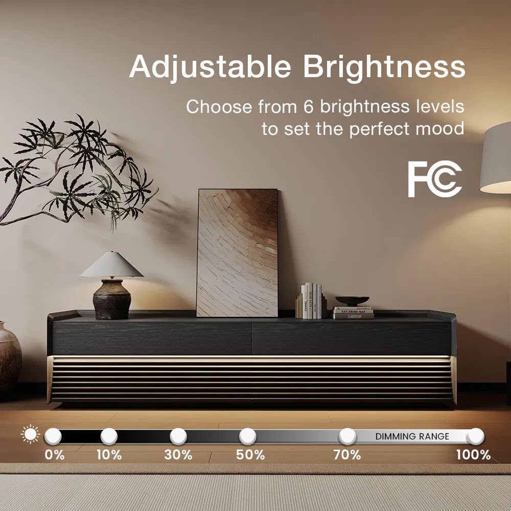 - Integrated LED Lighting: Enjoy the convenience of built-in LED lighting. The warm, 6-level adjustable lighting with remote control enhances the visual appeal of your TV console and makes your displayed items stand out