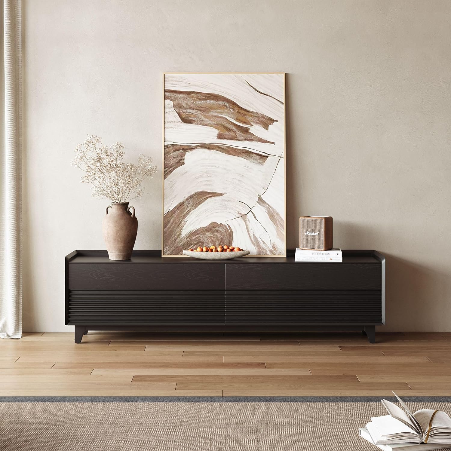 - Fully Assembled TV Console: This sintered stone tv stand with Legs comes fully assembled, saving you time and effort. No complicated instructions or tools required, upon receiving it, you only need to screw the middle support foot into the corresponding hole