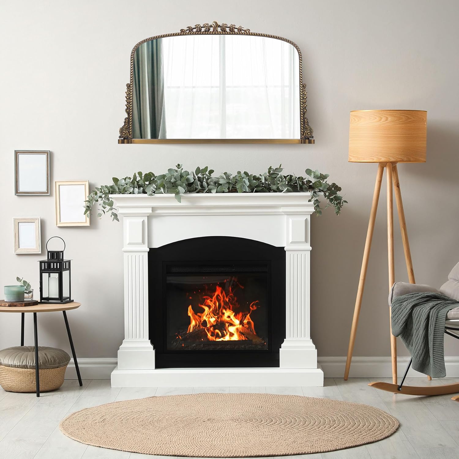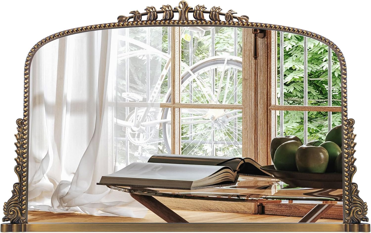 36"x23" Vintage Baroque Mirror - Ornate Antique Brass & Wood Frame, Handcrafted Arched Wall Mirror for Entryway, Living Room, Fireplace Mantel, Bathroom or Hallway Decor