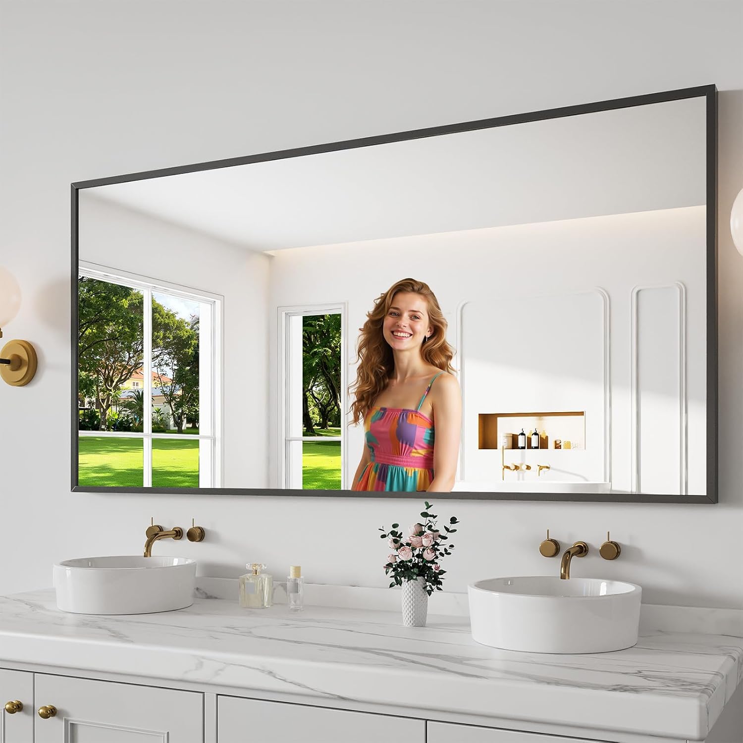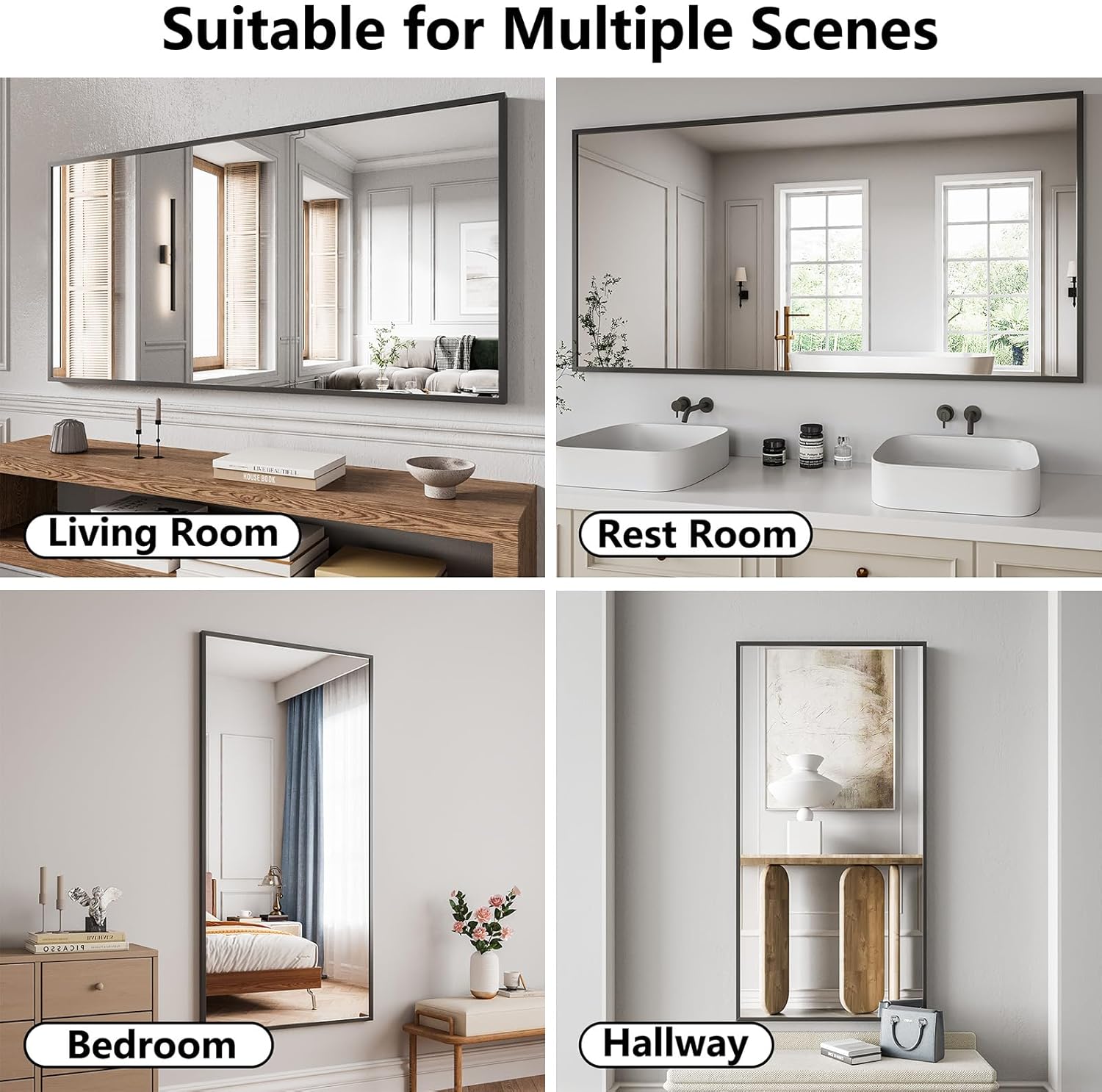 - More Than a Bathroom Mirror: Stylish Versatility for Every Room. Don’t stop at the bath—hang this mirror as a chic wall accent in entryways, living rooms, hotel suites, or walk-in closets. Its neutral black frame blends seamlessly with any decor, serving as both a functional outfit-check mirror and a light-enhancing focal point.