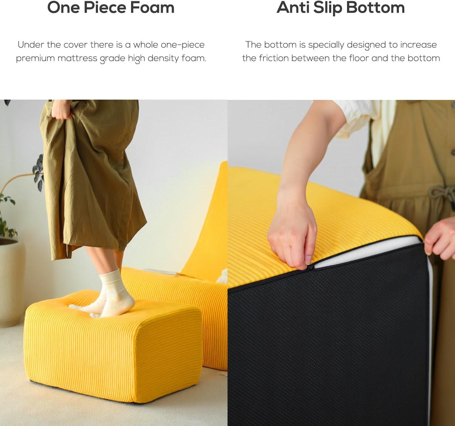 - 【One Piece Foam】: The single seat foam sofa is not like the conventional sofa or bean bag. Under the cover there is a whole one-piece premium mattress grade high density foam. These give you the supreme seating experience you never experienced.
