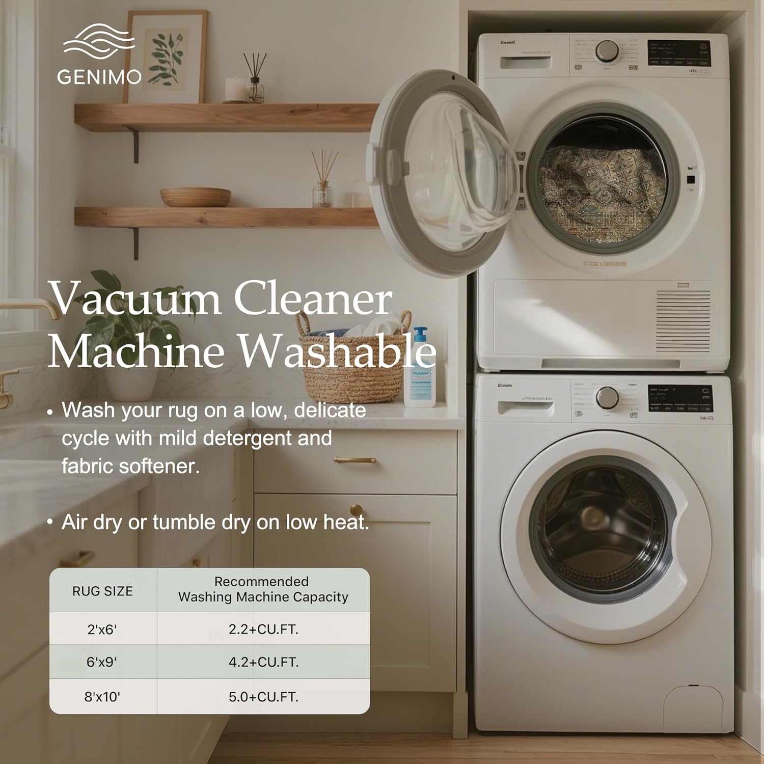 - Machine Washable: Our boho area rug is designed for convenience and fits seamlessly into any lifestyle. Machine wash with cold water on gentle cycle (not to add bleach), air dry or dry on air-only cycle without heat. For daily upkeep, use a vacuum cleaner or a quick wipe. Its VERY THIN design allows for easy removal of pet hair and other debris.