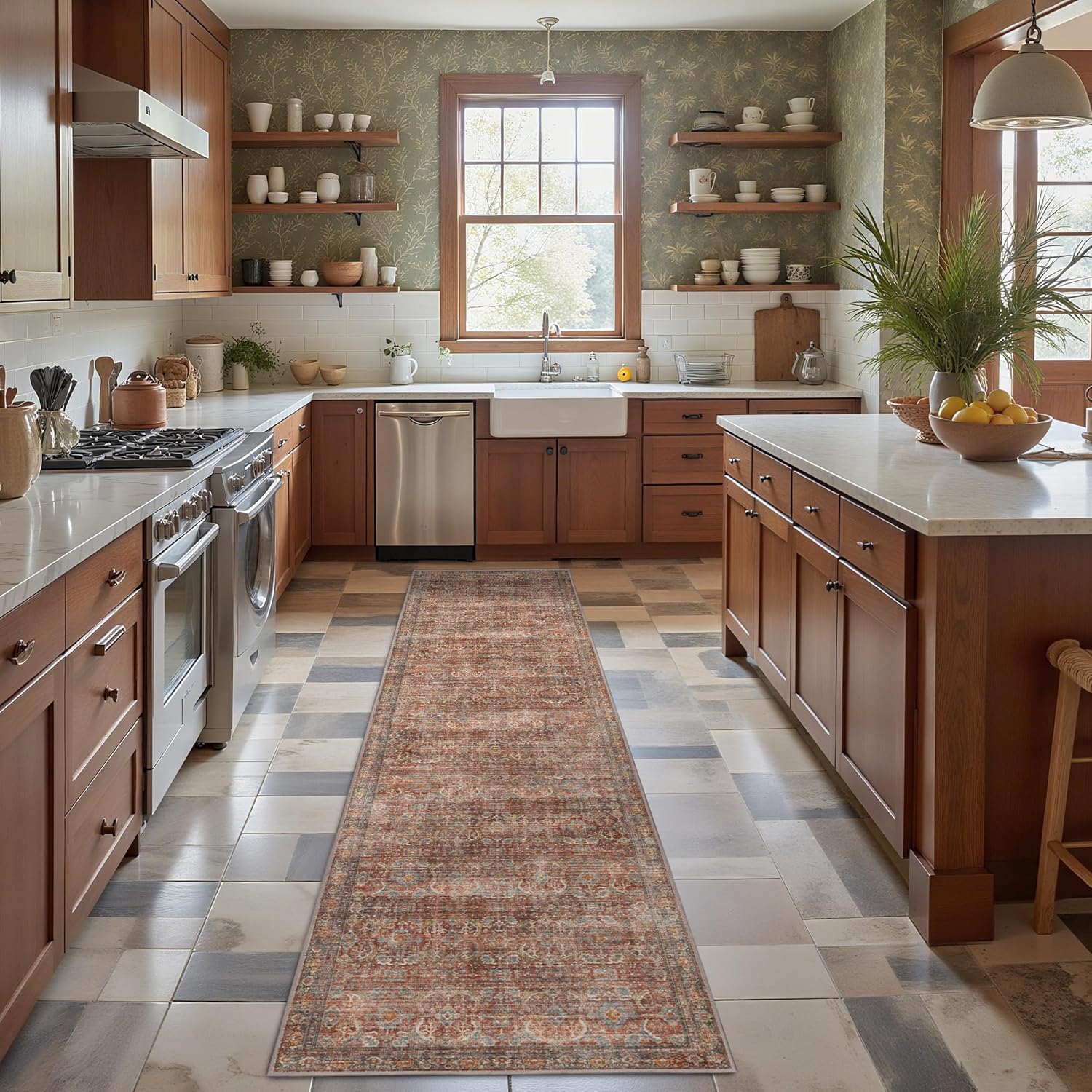 GENIMO 2x7 Runner Rugs for Hallway, Machine Washable Non Slip Vintage Rugs, Low Pile Lightweight Soft Print Rug for enrtyway, Corridor, Home Office, Kitchen, Terracotta Indigo
