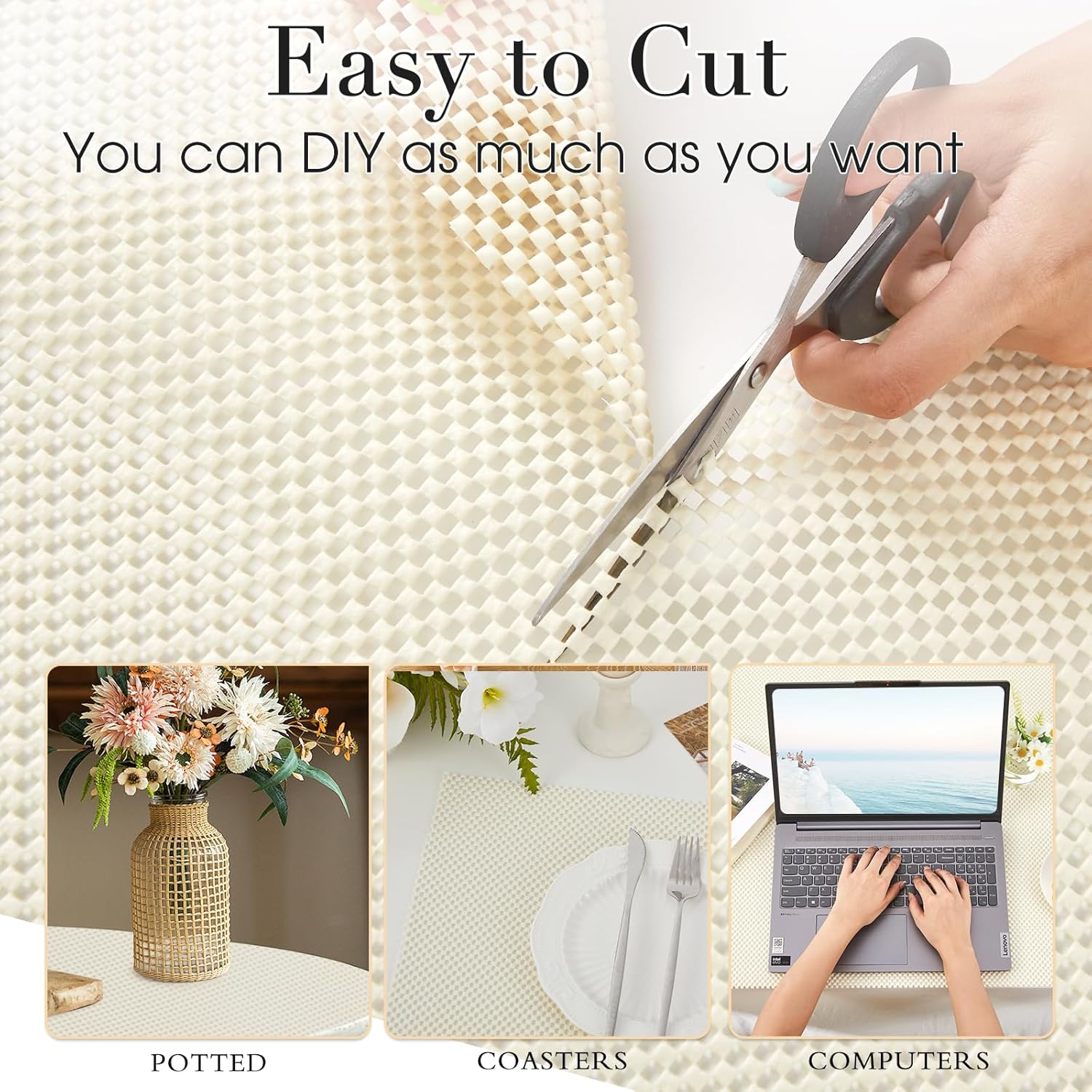 - Breathable Shelf Liner:The creamy white non-slip drawer liner of weave design. Open hole allows for breathability to shield cabinets from collecting unwanted dirt and debris. Easily cleaned with a damp cloth or sponge, ensuring that your home pristine beauty remains intact, day after day