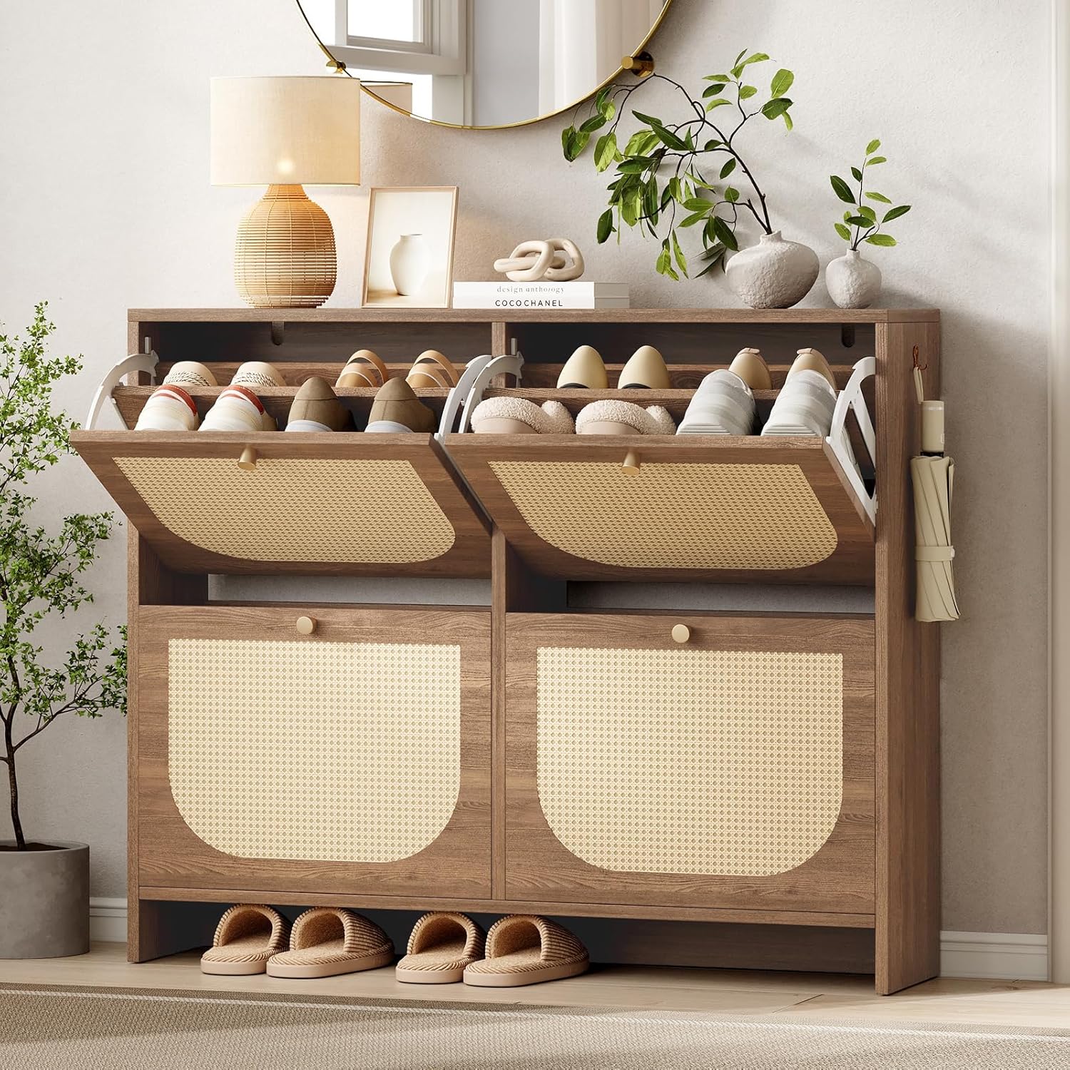 Nicetree Shoe Cabinet Storage for Entryway, Farmhouse Slim Shoe Organizers with 4 Flip Drawers, Freestanding Large Shoe Rack with 3-Tier Adjustable Shelves for Hallway,Foyer, Rustic (Oak)