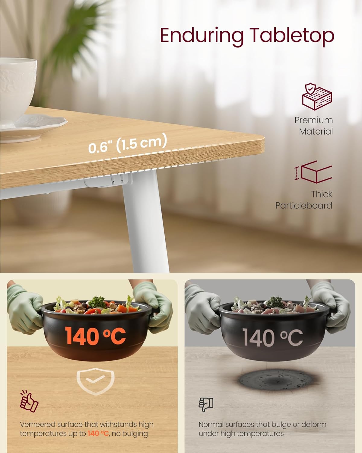 - Durable Surface for Daily Meals: The 0.6" veneered particleboard tabletop withstands heat up to 140°C, resists scratches, and is easy to clean for hassle-free maintenance