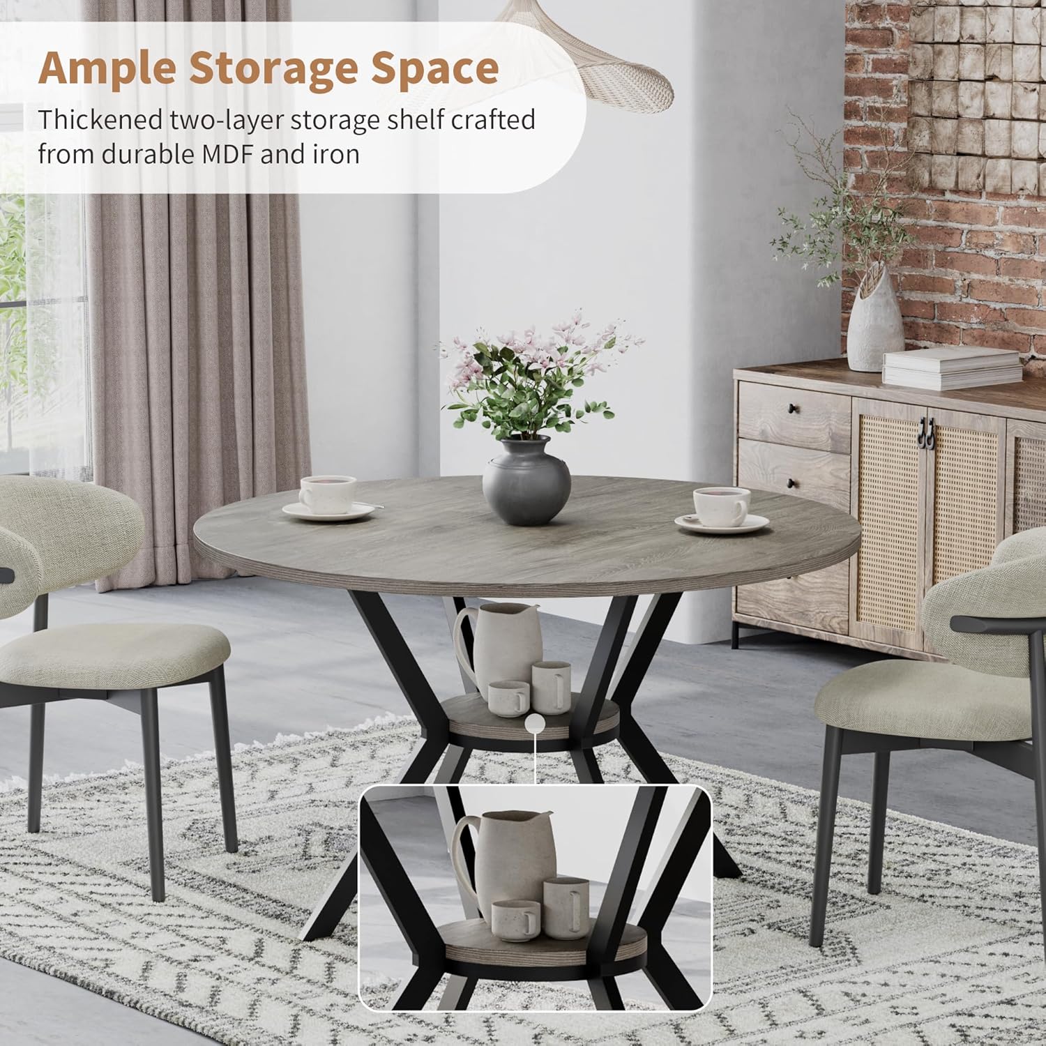 - Smart Storage Meets Sleek Design: Keep your dining area tidy and stylish with the built-in lower shelf — This pedestal dining table is ideal for storing dinnerware, kitchen essentials, or decorative accents. The round shape and pedestal base maximize usable space, making the modern kitchen table perfect for smaller rooms without sacrificing functionality.