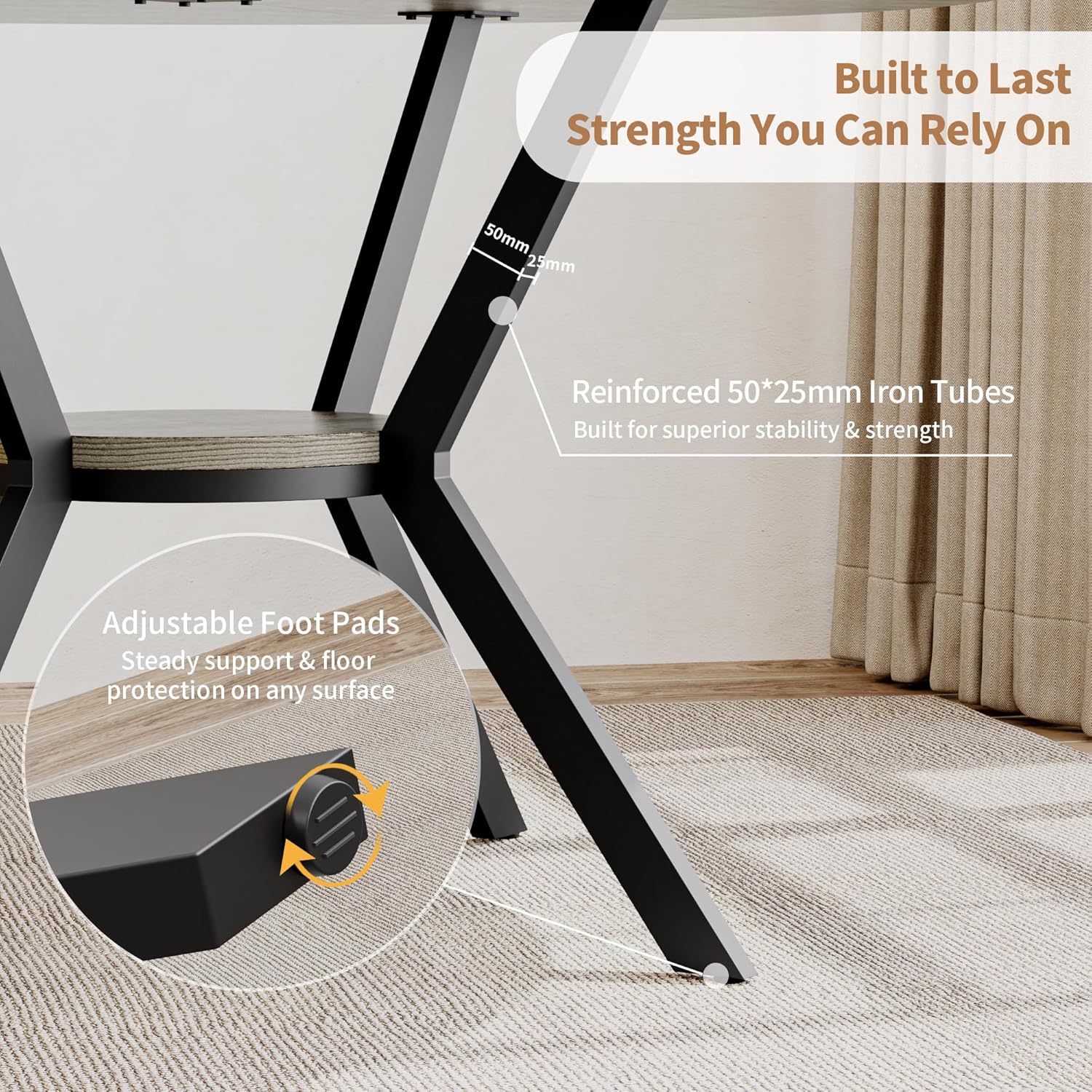 - Durable, Stable & Everyday-Ready: Built to withstand daily use, this compact dining table features a solid X-shaped base and heavy-duty 50x25mm steel legs for enhanced stability. The thick MDF tabletop is heat-resistant, scratch-resistant, and waterproof — easy to clean and ready for anything from busy breakfasts to weekend dinner parties. Adjustable, anti-slip foot pads ensure stability on uneven floors while protecting your surfaces.