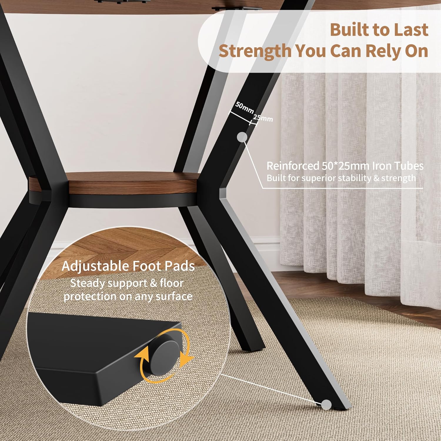 - Durable, Stable & Everyday-Ready: Built to withstand daily use, this dinner table for 4 features a solid X-shaped base and heavy-duty 50x25mm steel legs for enhanced stability. The thick MDF tabletop is heat-resistant, scratch-resistant, and waterproof — easy to clean and ready for anything from busy breakfasts to weekend dinner parties. Adjustable, anti-slip foot pads ensure stability on uneven floors while protecting your surfaces.
