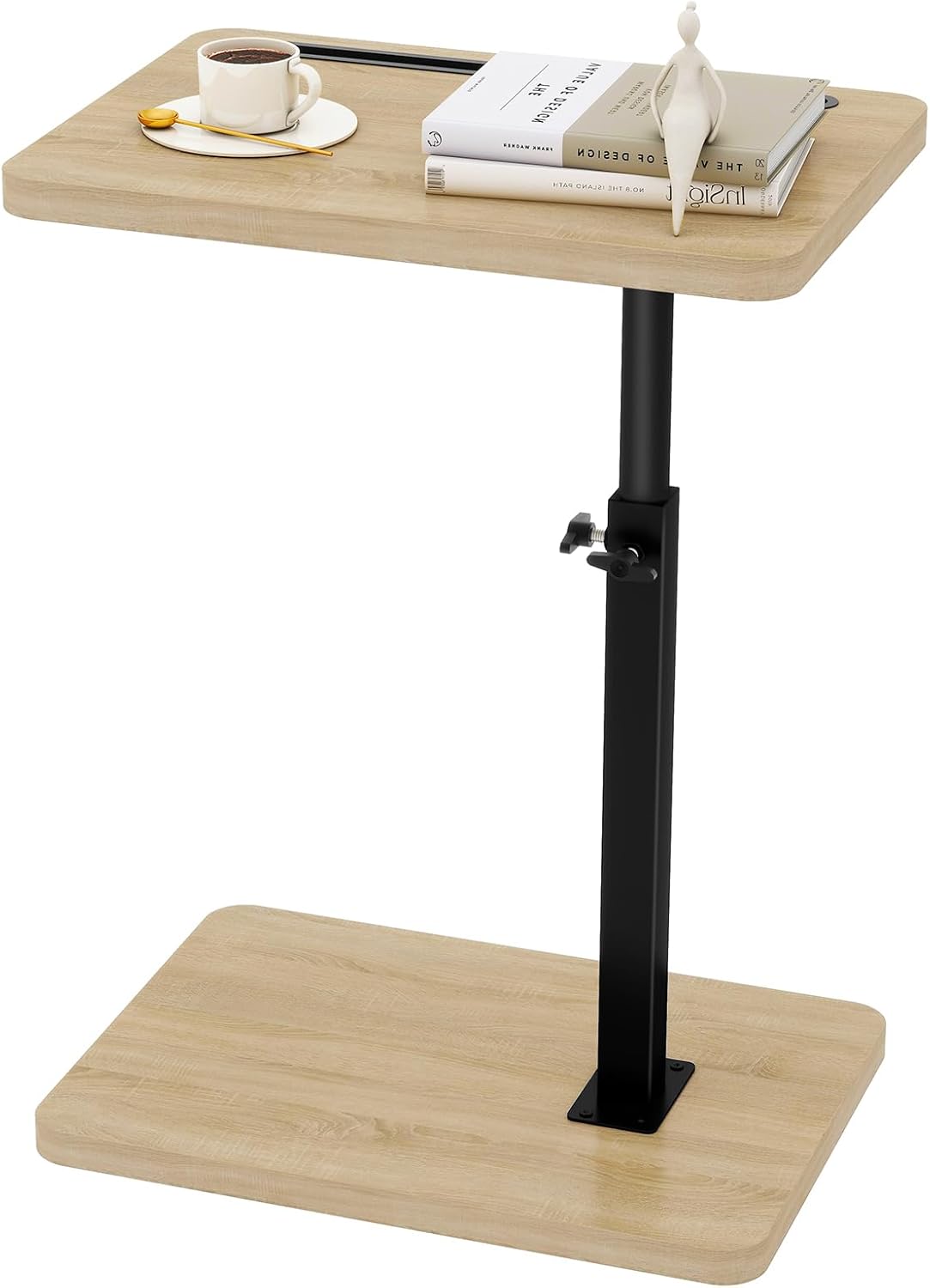 - 【Wooden C Table End table】Our C-Shaped Tray Table is made of sturdy square steel tube frame and high quality particle board, which provides a solid and stable support for your laptop or potted plants. The base is stable against the floor and won't tip over, and it fits easily between sofas or beside beds.