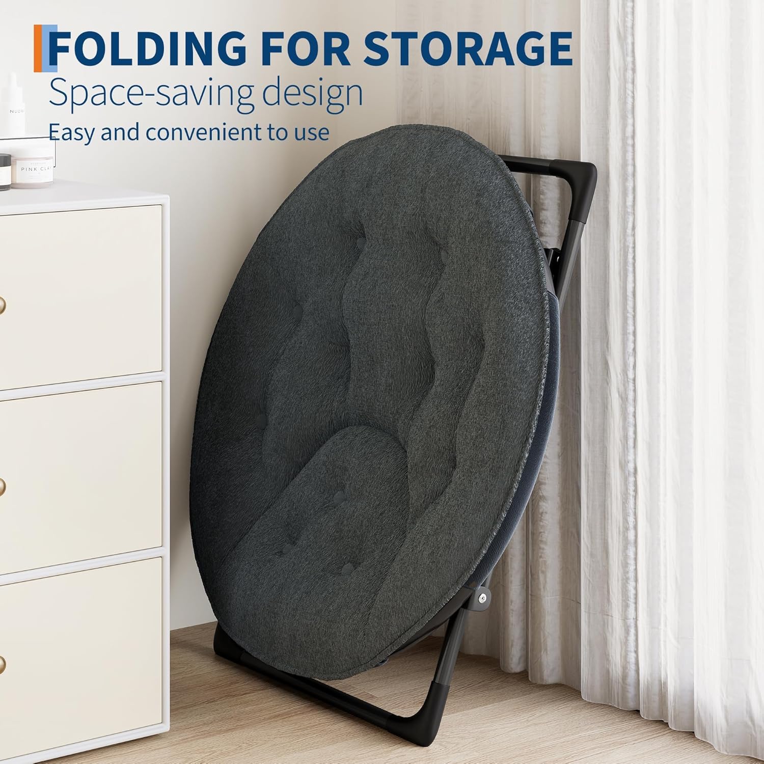 - 【Space-Saving Storage Solution】Effortlessly save space with this folding saucer chair for adults and teens. When not in use, its compact design can be tucked away into closets, under beds, or against walls. Ideal for maximizing space in small apartments, bedrooms, or dorm rooms.