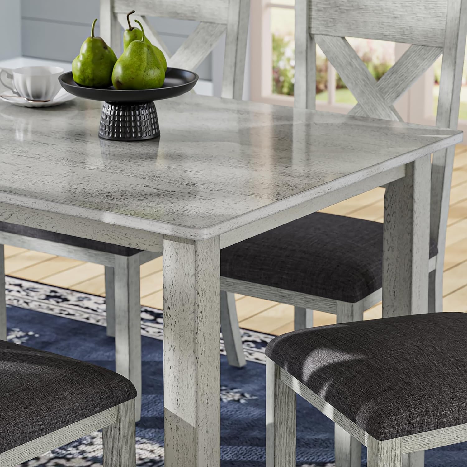 - Versatile Style: Feature a modern light gray finish and natural wood grain, the dining room table set for 6 blend easily with various home decor style