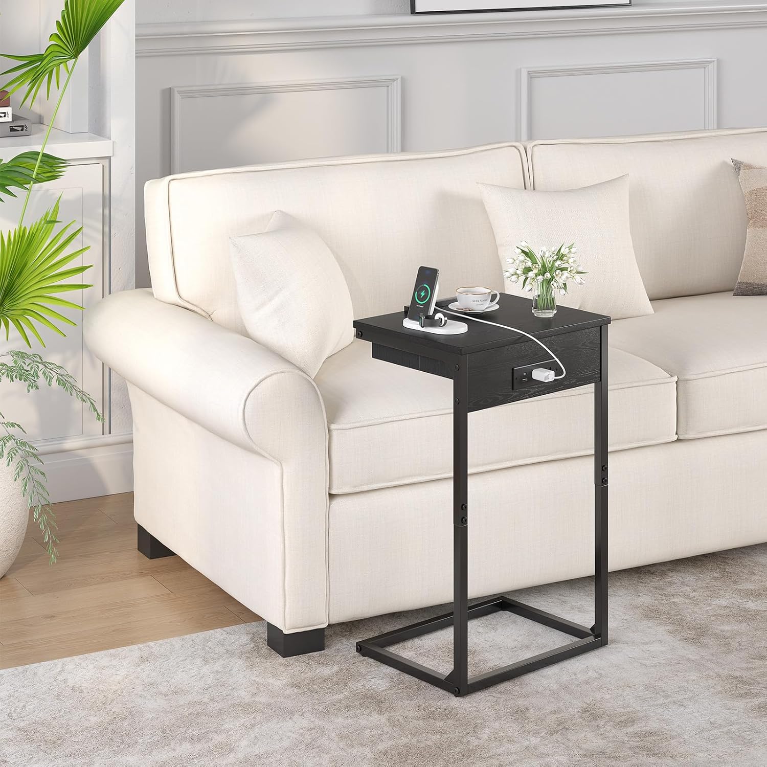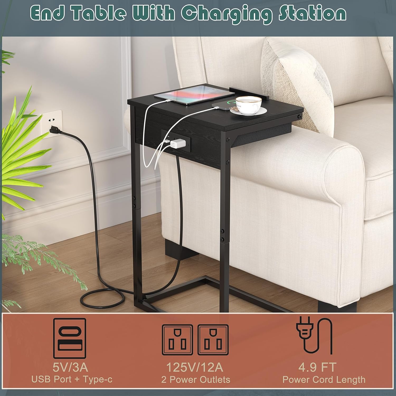 - Side Tablet with Charging Station: C table designed with charger station comes with built-in 2 outlets,1 USB port and 1 Type-C port ,which is access to charge devices while sleeping,energy always by your side,Meanwhile the 4.9 ft extension cord is more convenient charging ports for multiple useage