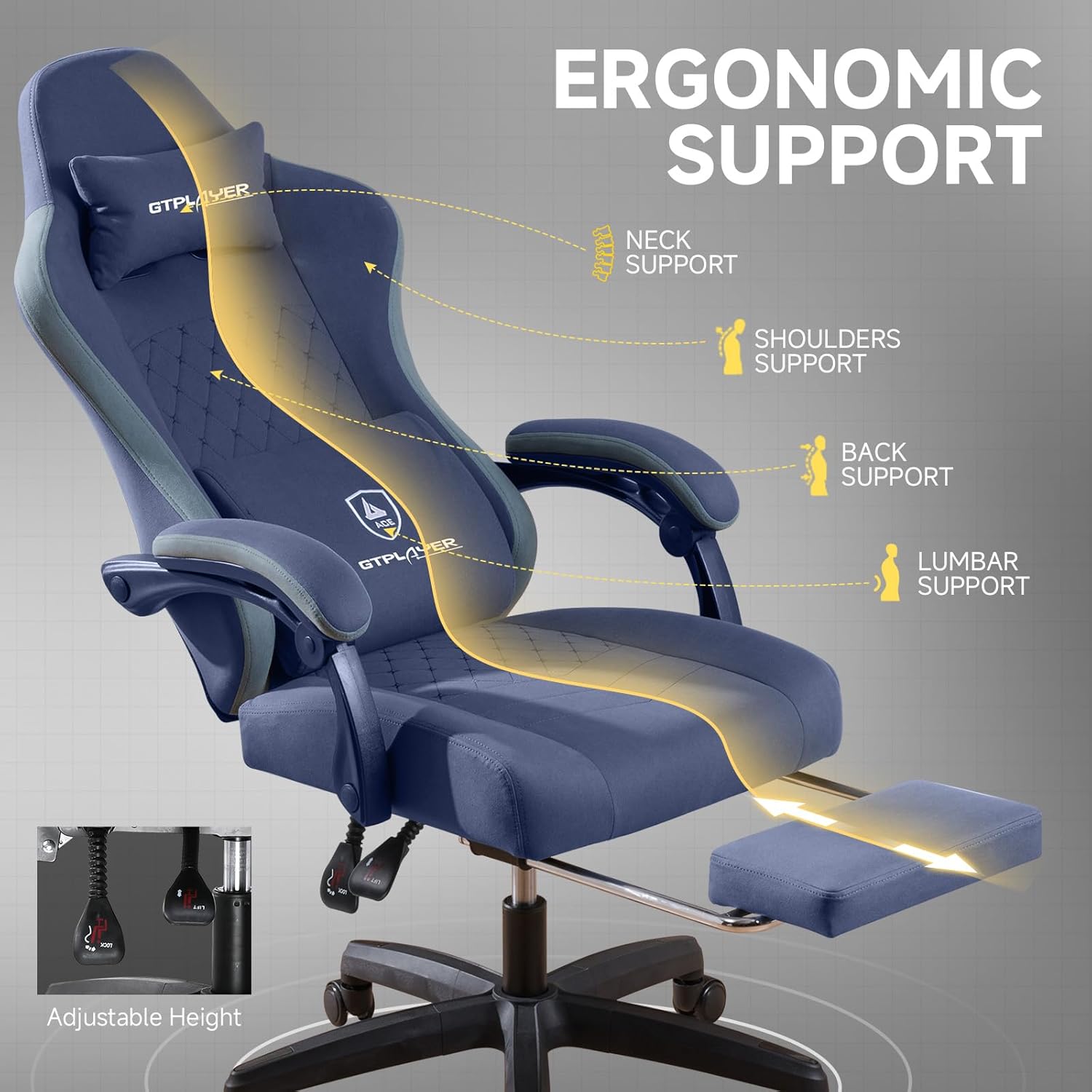 GTPLAYER Office Chair, Gaming Computer Desk Fabric Chair with Footrest, High Back Ergonomic Office Chair with Pocket Spring Lumbar Support and Linkage Armrests Adjustable Height Swivel for Home Task