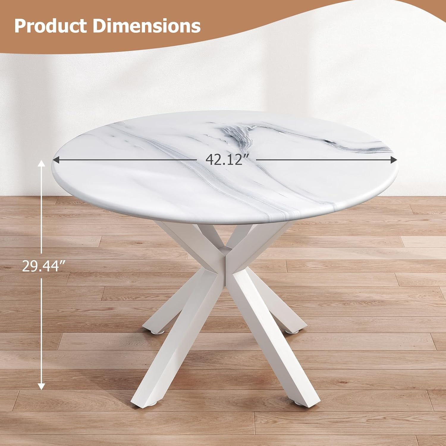 Round Dining Table, 42" Kitchen Dining Table for 4-6, Small Round Table with Metal Cross Legs, Modern Round Dining Room Table for Kitchen, Apartment, Living Room, White Marble