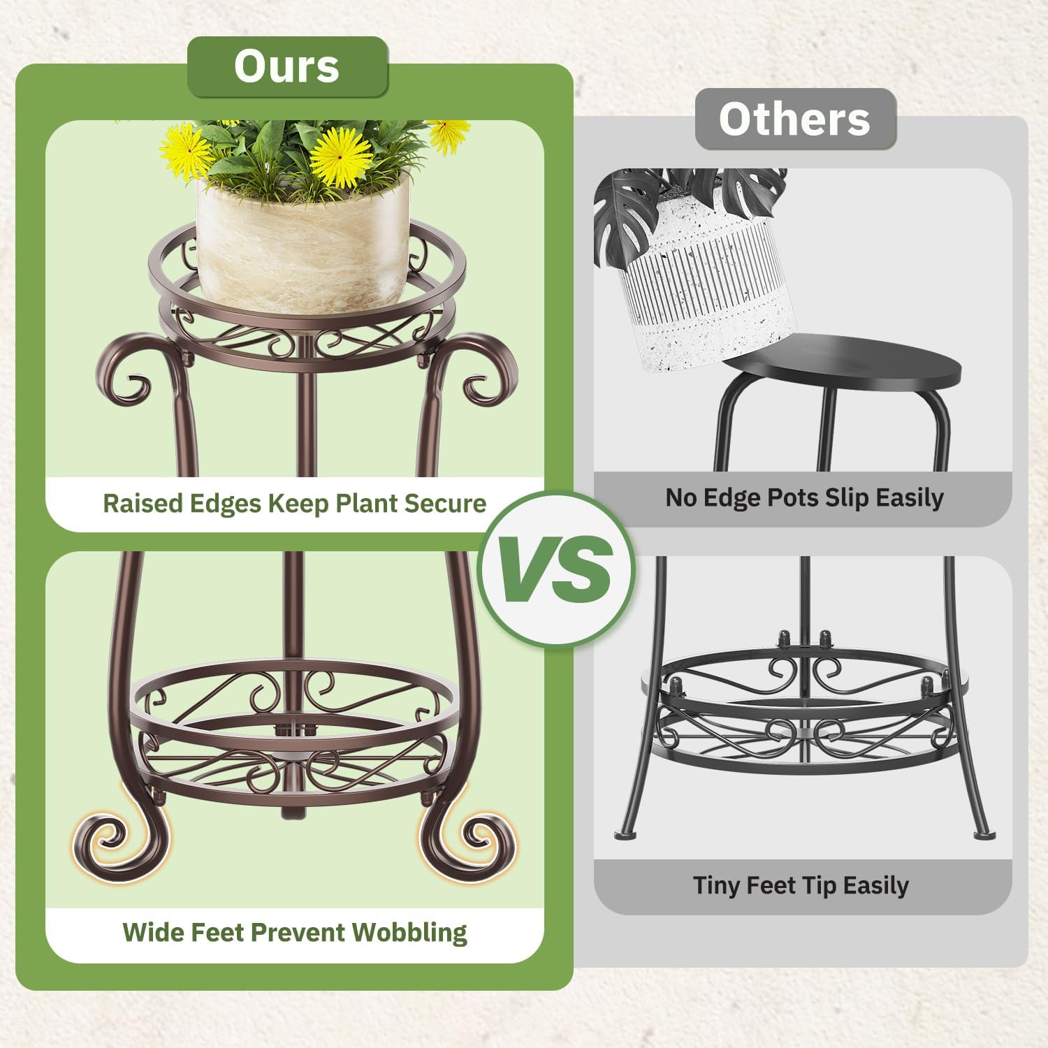 - 【Never Worry About Wobbles】Engineered with a reinforced iron frame and triangular bracing, the metal plant stands outdoor secures heavy planters effortlessly. Its rock-solid foundation keeps plants upright, even with active pets or frequent household movement