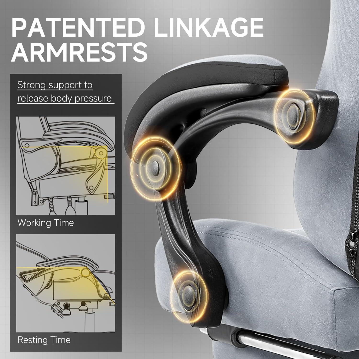 GTPLAYER Office Chair, Gaming Computer Desk Fabric Chair with Footrest, High Back Ergonomic Office Chair with Pocket Spring Lumbar Support and Linkage Armrests Adjustable Height Swivel for Home Task