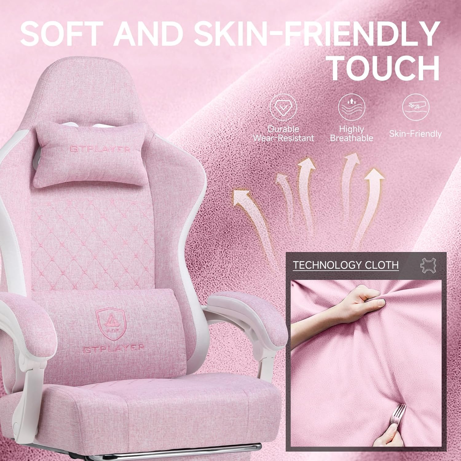 GTPLAYER Office Chair, Gaming Computer Desk Fabric Chair with Footrest, High Back Ergonomic Office Chair with Pocket Spring Lumbar Support and Linkage Armrests Adjustable Height Swivel for Home Task