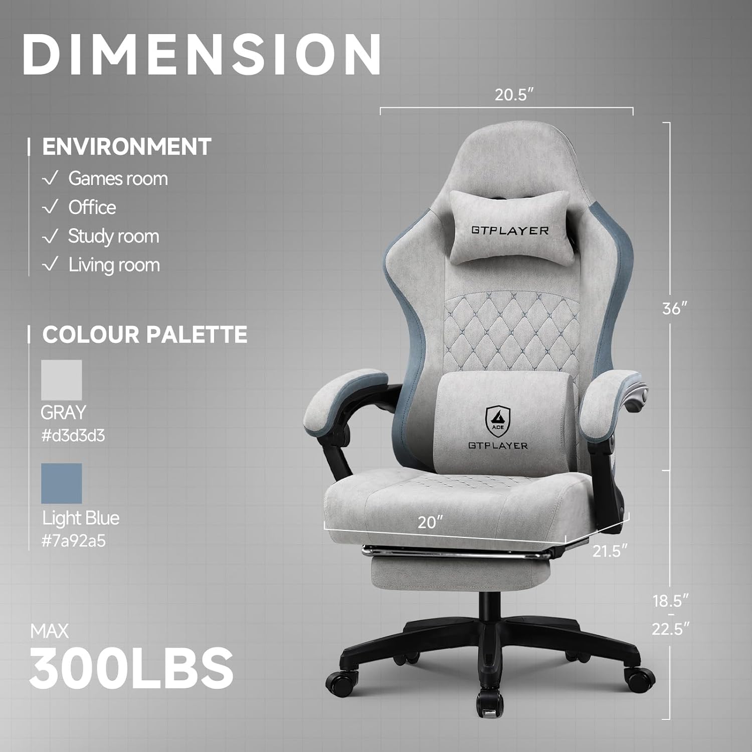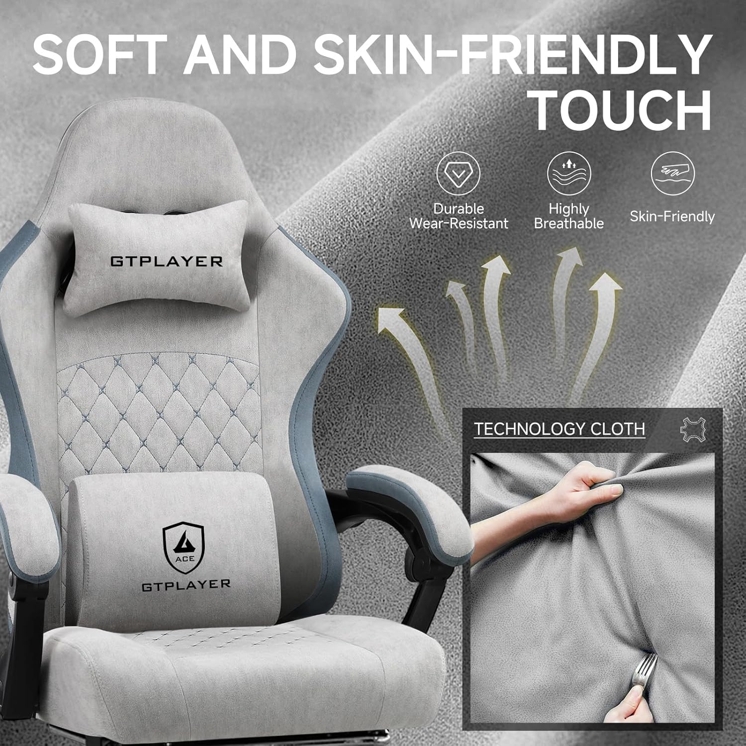 GTPLAYER Office Chair, Gaming Computer Desk Fabric Chair with Footrest, High Back Ergonomic Office Chair with Pocket Spring Lumbar Support and Linkage Armrests Adjustable Height Swivel for Home Task