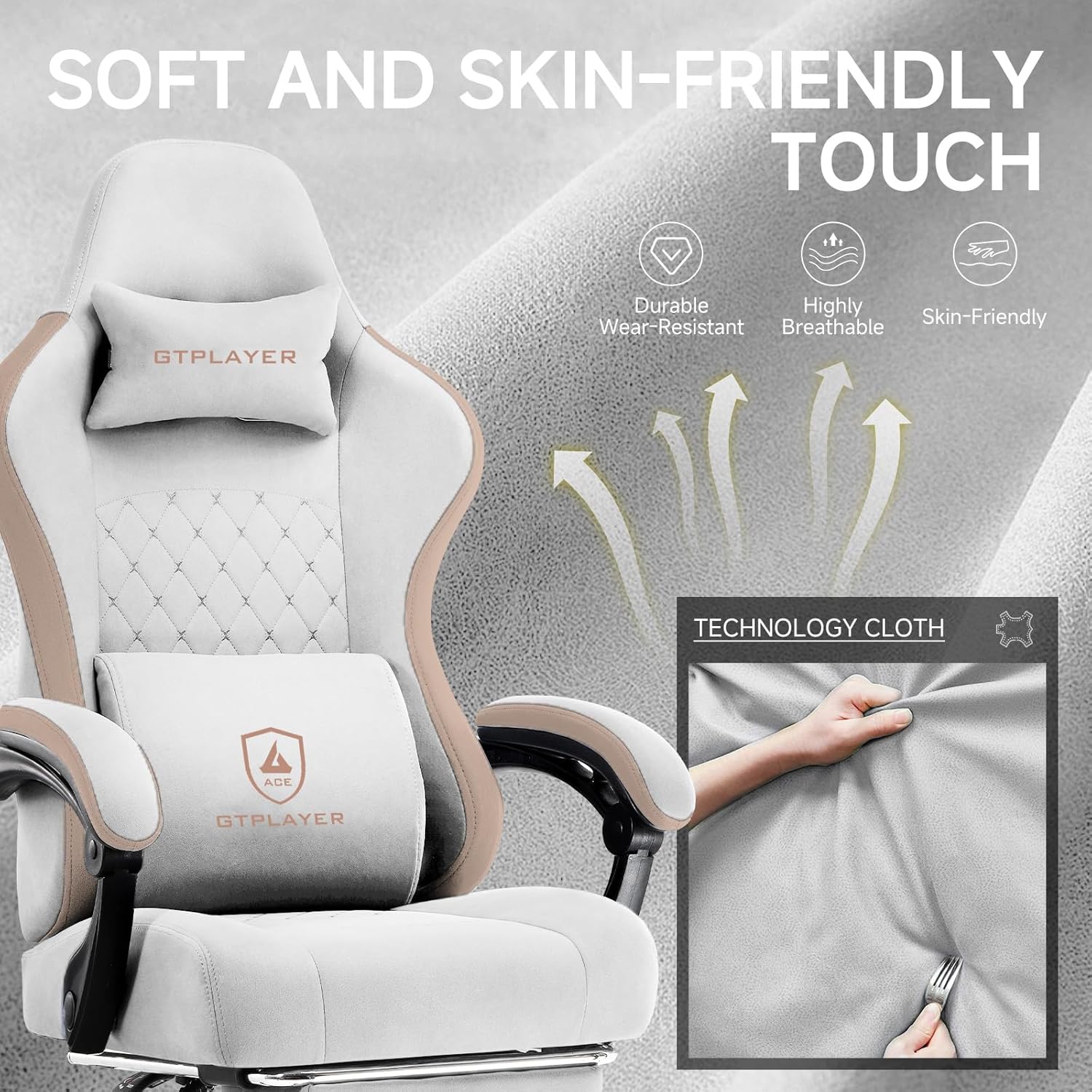 GTPLAYER Office Chair, Gaming Computer Desk Fabric Chair with Footrest, High Back Ergonomic Office Chair with Pocket Spring Lumbar Support and Linkage Armrests Adjustable Height Swivel for Home Task