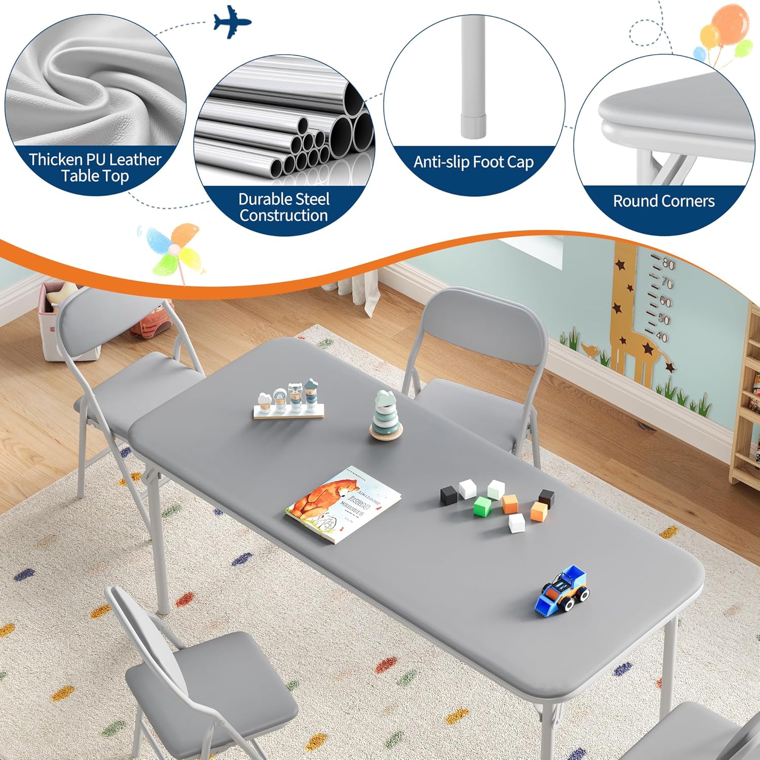 GarveeHome 5-Piece Kids Folding Table and Chairs Set, Toddlers Children's Activity Table and Chairs Set for Dining Room,Daycare,Classrooms