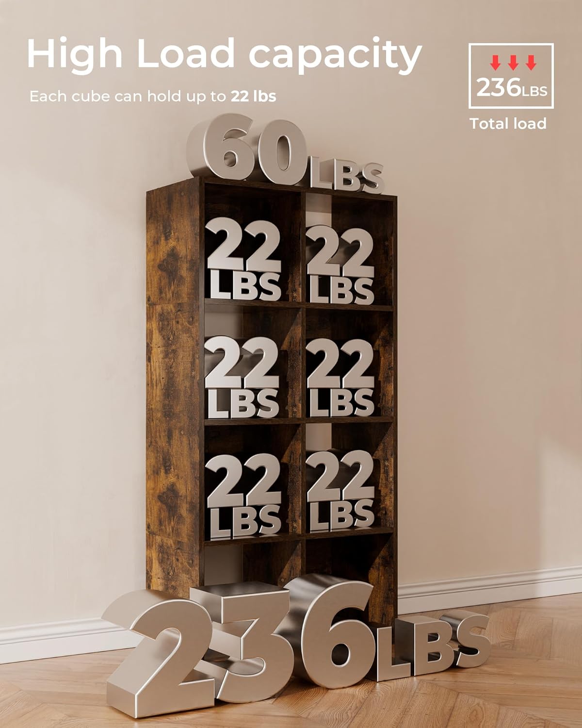 - ✅【Modular 8-Cube Storage Organizer】 – With 8 cubes and a rich rustic brown finish, this shelf offers flexible vertical or horizontal placement—perfect as a media console, room divider, or full storage wall.