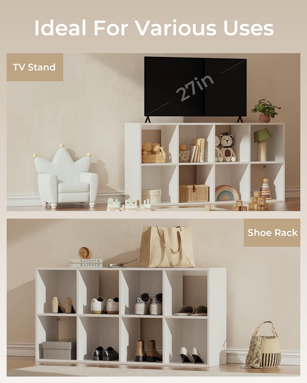 - ✅【Modular 8-Cube Storage Organizer Shelf】 – This large cube shelf can be used vertically or horizontally as a media console, living room bookshelf, or freestanding wall organizer for shared spaces.
