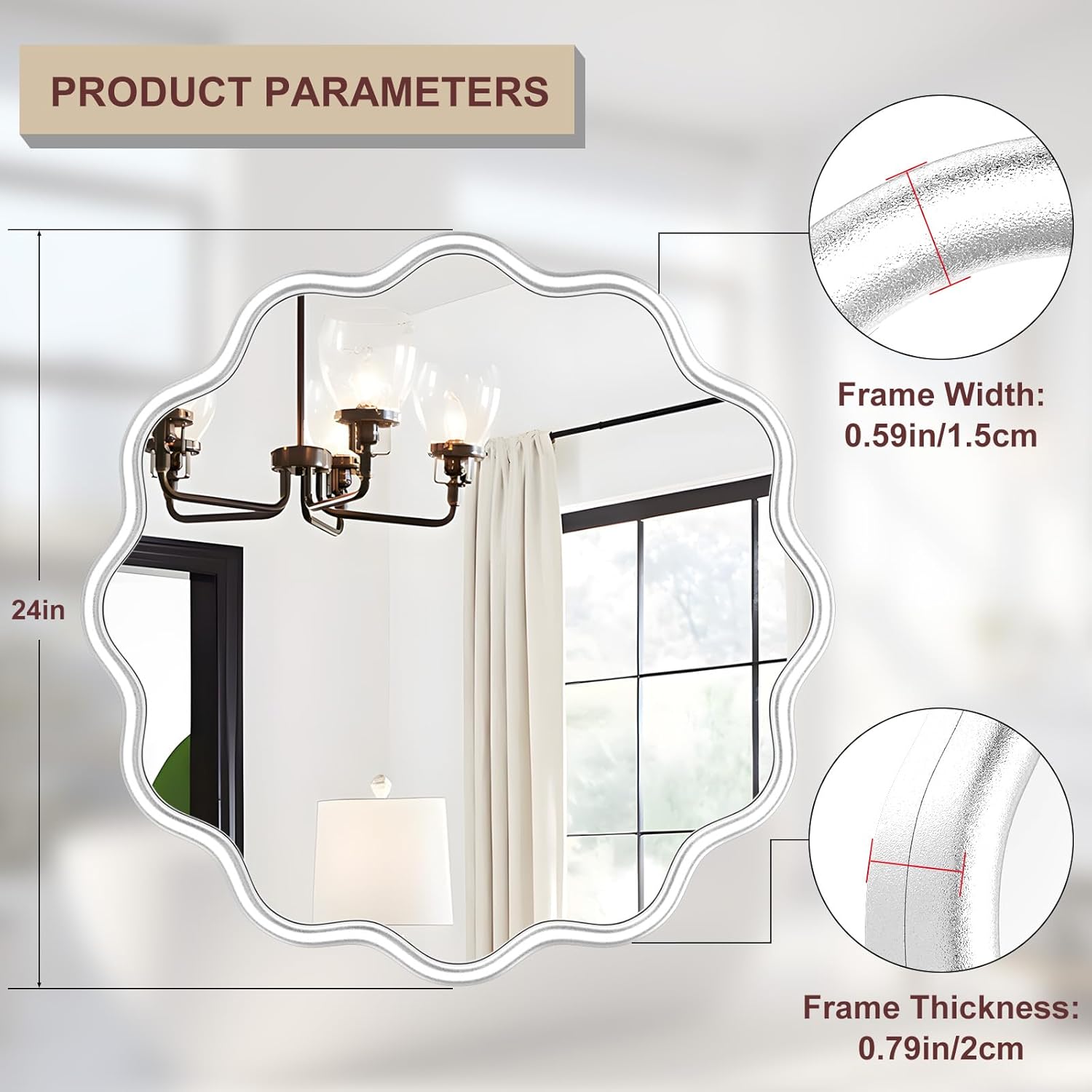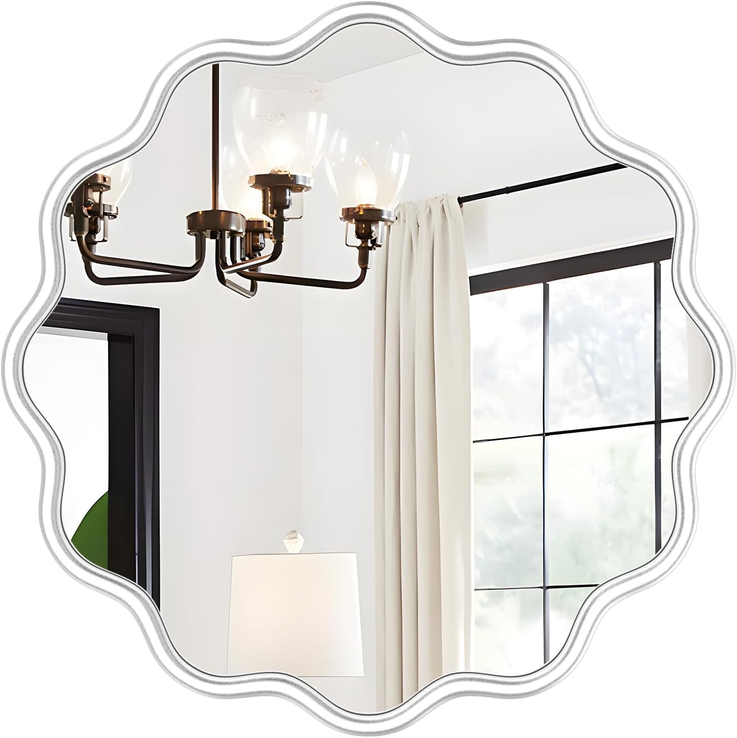 - 【Modern Simple Style Decorative Mirrors】: The round wavy frame mirror with its modern decorative, it can be used in a variety of scenarios, suitable for bathroom upgrades, hotels, vanity, farmhouse, bedroom, living room, dining room, entryway, fireplace, corner
