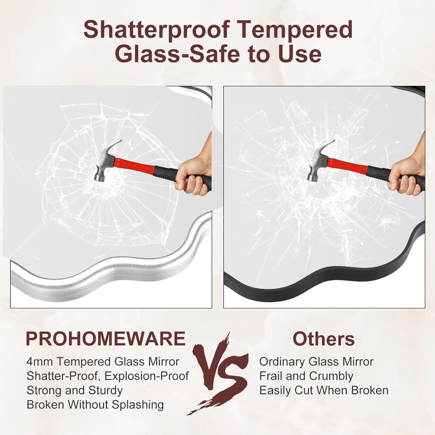 - 【Shatterproof Tempered Glass】: The wall-mounted bathroom mirror features 5MM tempered glass with shatterproof film, which is shatter-proof, burst-proof, and ensures your safety even in case of breakage