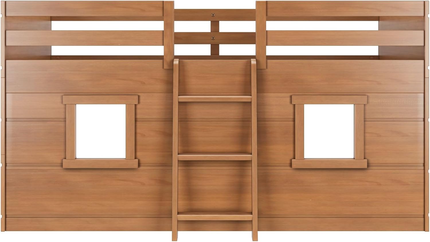 Max & Lily Modern Farmhouse Twin Low Loft Bed with Two Windows - Solid Wood, 15” Guardrails, 400-lb Capacity, Low-VOC Finish, Farmhouse Pecan