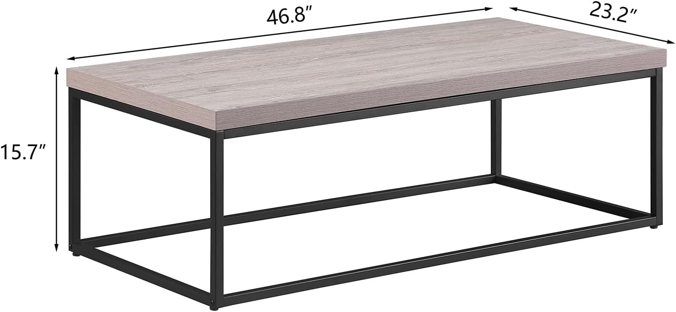 CENSI 47-Inch Grey Wash Accent Coffee Table/Center Table for Living Room, Rectangle Modern Industrial Style,Wood and Metal, Max.Loading 220 lbs. (French Oak)