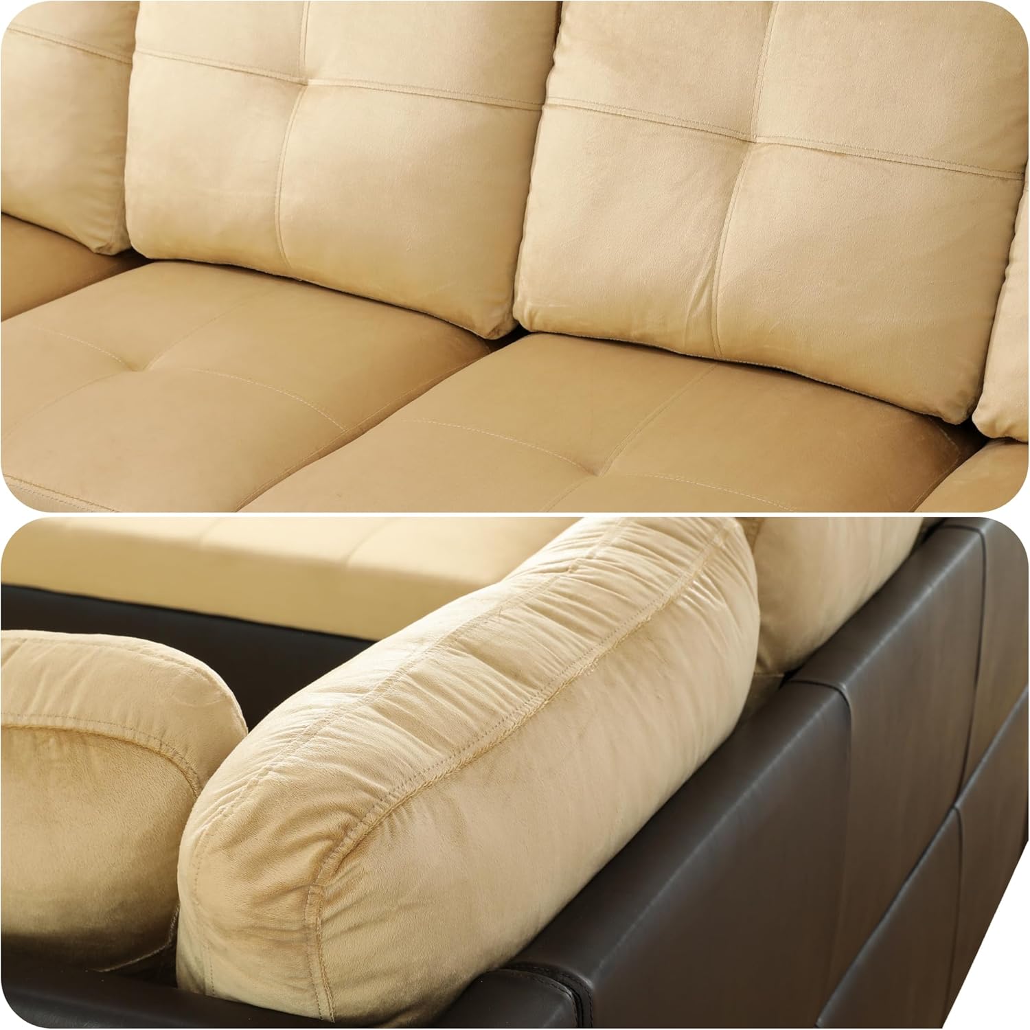 Modern Living Room Furniture Sets with Pillows, Modular Sectional Couches with Chaise Lounge, 4-Seaters L Shape Sofa with Storage Ottoman, for Living Room, Beige and Brown
