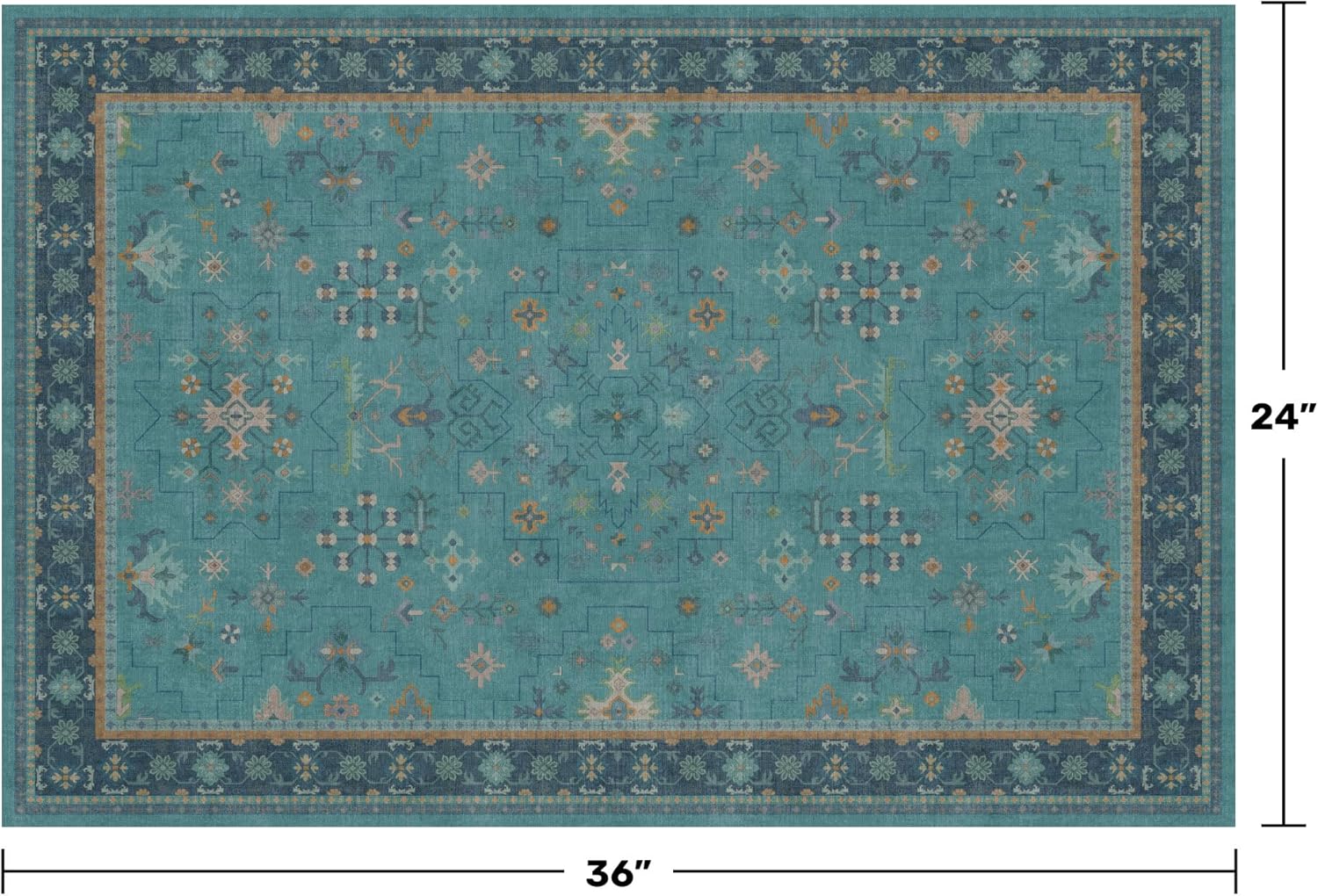 2x3 Washable Teal Rug for Entryway Indoor, Kitchen Floor Waterproof, Bathroom, Powder Room, Non Slip Low Pile Stain & Fade Resistant, Modern Turquoise Aqua Décor