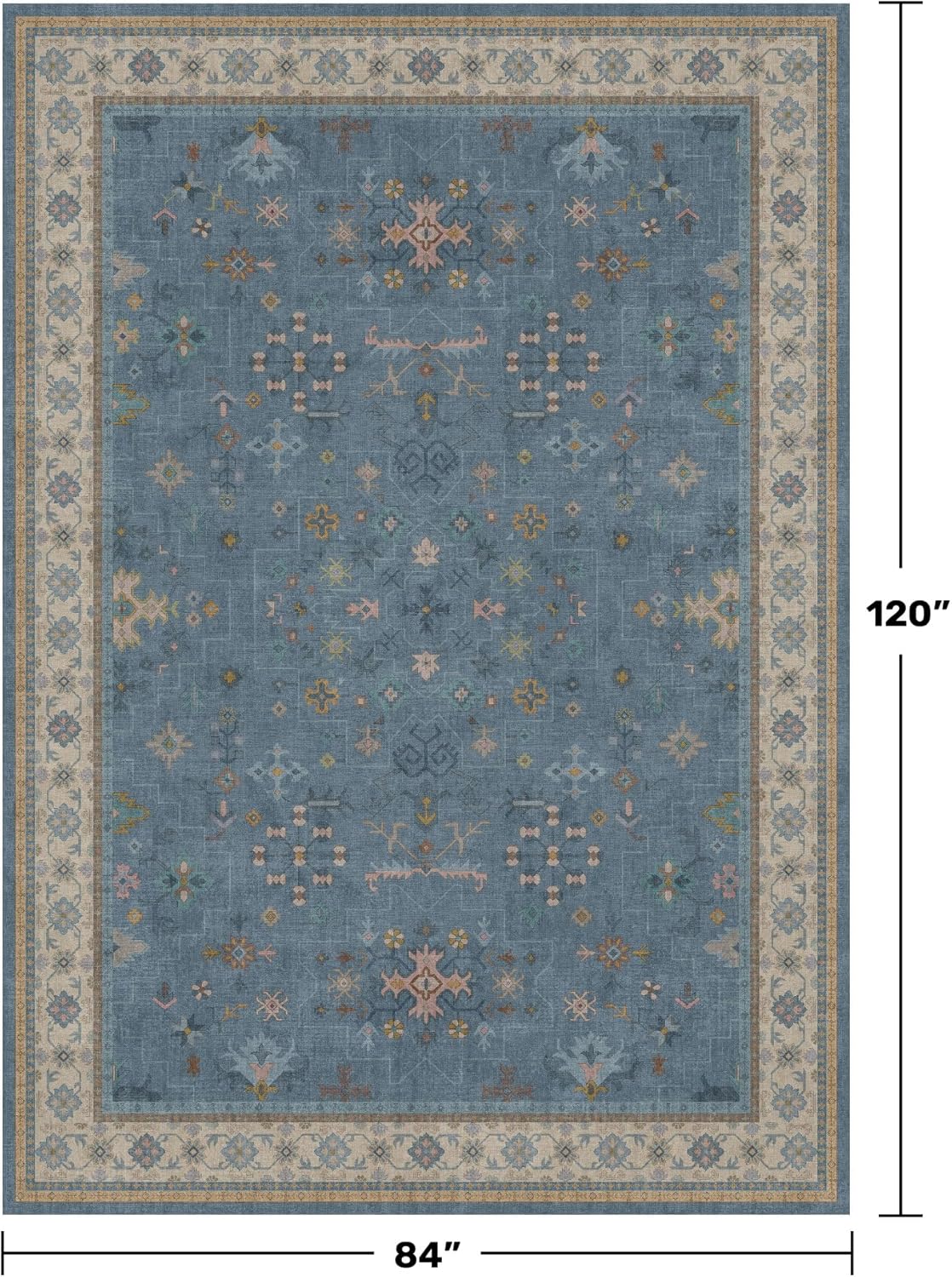 Boho 7x10 Accent Area Rugs for Living Room - Dusky Blue Rug for Bedroom Under Bed, Dining Room Under Kitchen Table, Washable Soft Non Slip Unique Colorful Indoor Décor