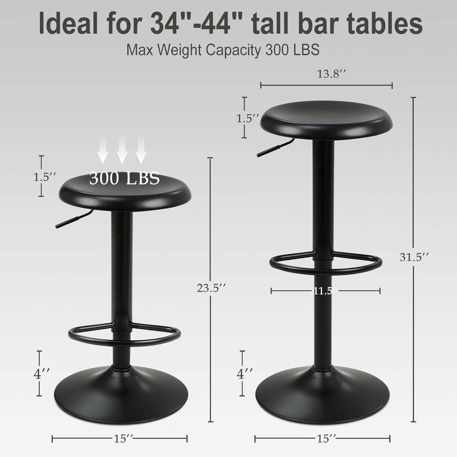 Bar Stools - 2 Pack, Adjustable Swivel Height Counter Bar Stool, Modern Metal Barstools, Backless Barstool for Bar, Kitchen Island, Pub, Black