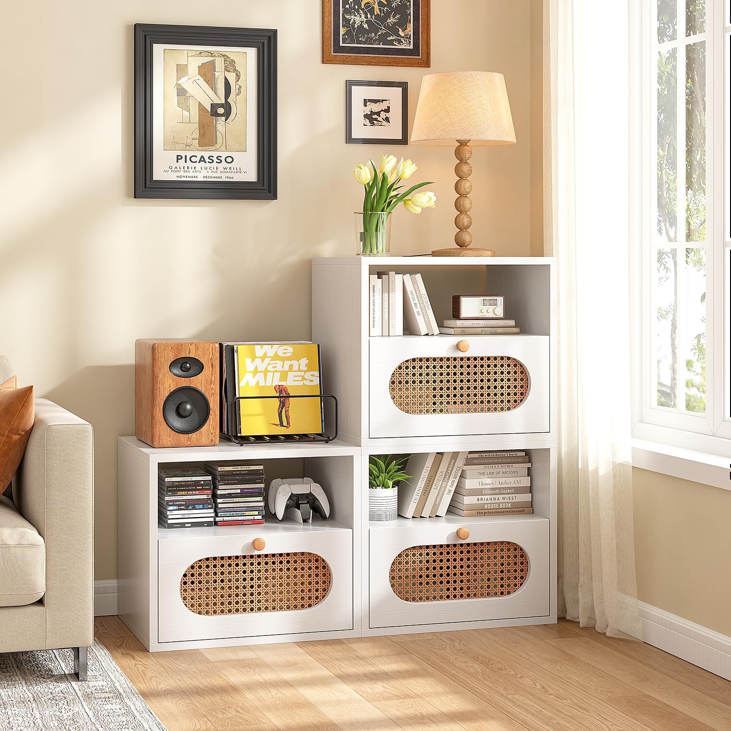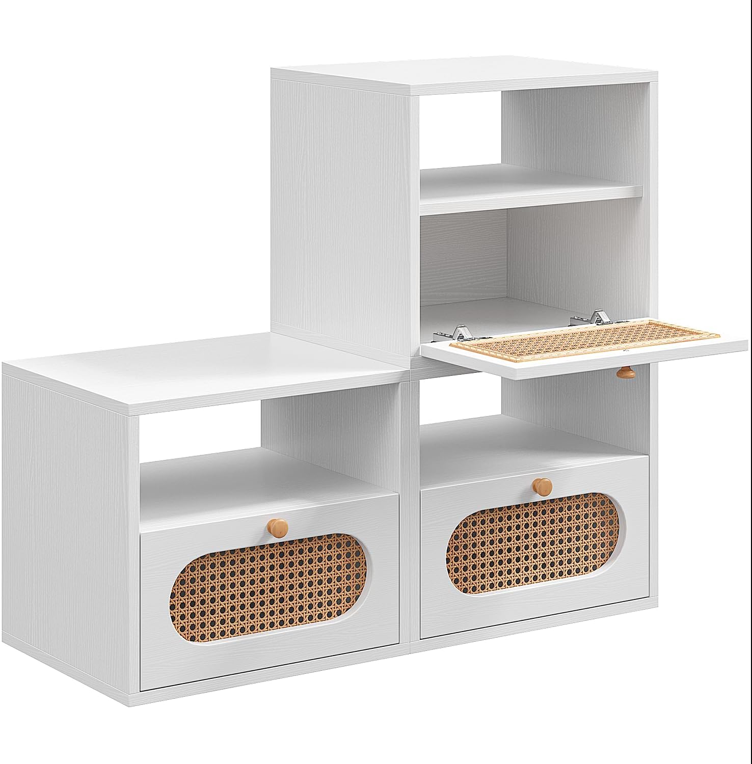 - Boho-Inspired with Rattan Accents – Each cabinet features a natural woven cane door panel paired with a matte wood finish, adding a stylish, organic touch that fits boho, farmhouse, and minimalist decor.