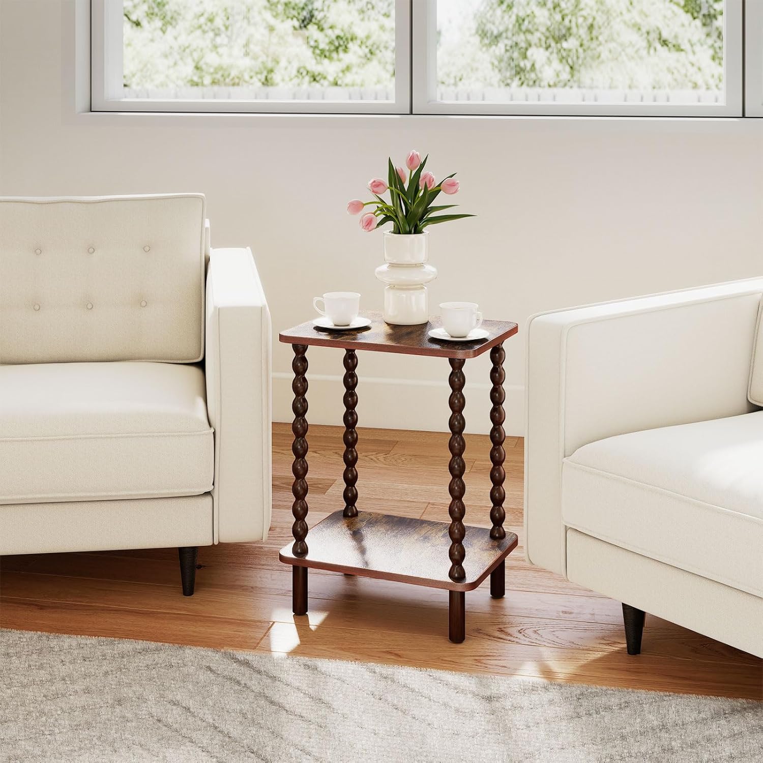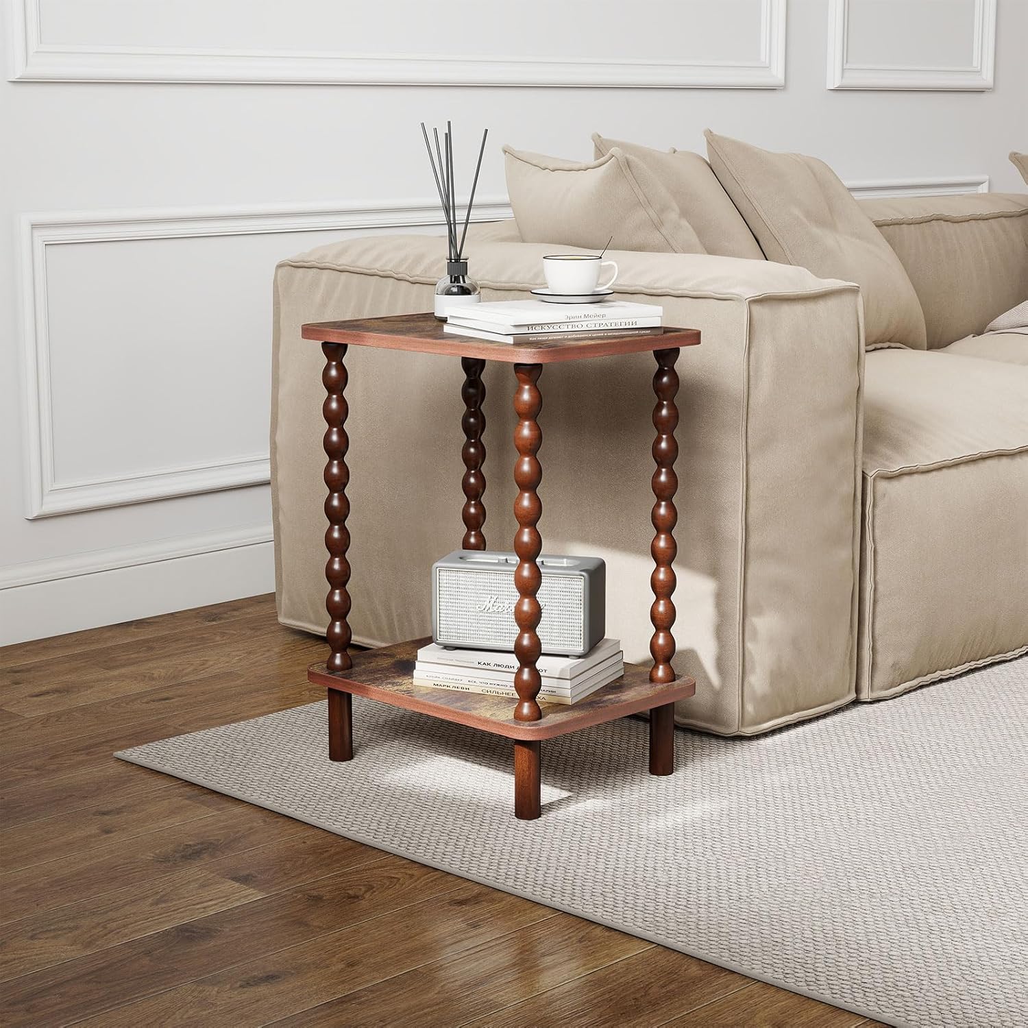 2-Tier End Table,Vintage Side Table,Solid Wood Bedside Table with Storage Rack,for Living Rooms, bedrooms, and Narrow Spaces (Rustic Brown)