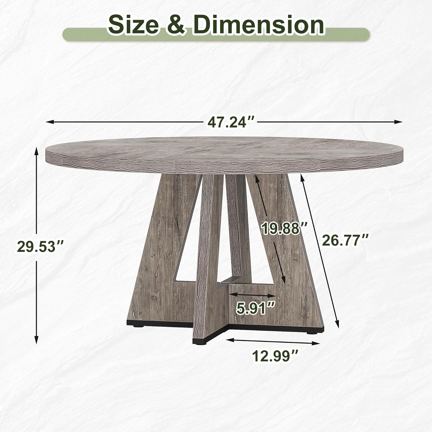 NicBex 47-Inch Round Dining Table for 4, Farmhouse Dinner Table Small Farmhouse Kitchen Tables with Wood Pedestal Base for Dining Room, Kitchen, Living Room, Gray