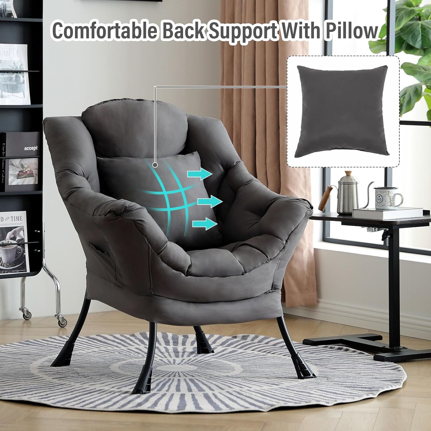 Lazy Chair with Pillow for Living Room, Modern Lounge Accent Chair with Armrests, Leisure Sofa Chair Set, Reading Chair for, Bedroom, Dorm Room, Office, Dark Grey