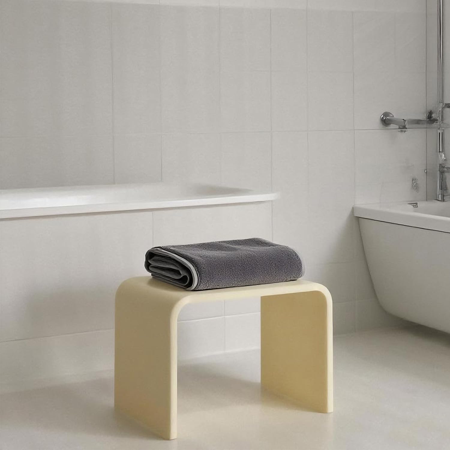 - [Modern U-Shaped Design] Featuring a sleek U-shaped silhouette and smooth, rounded edges, this stool delivers a minimalist aesthetic that blends effortlessly into any decor—whether placed in bathrooms, kitchens, living rooms, or workspaces. Its transparent profile creates a visually lighter, clutter-free look.