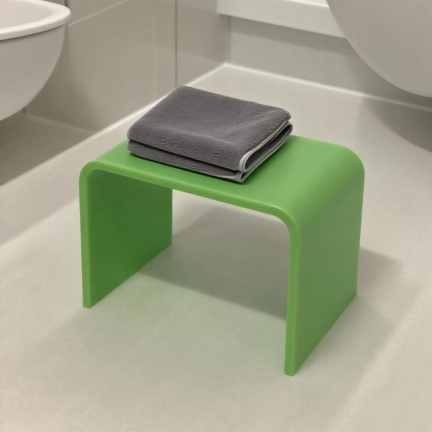 - [Modern U-Shaped Design] Featuring a sleek U-shaped silhouette and smooth, rounded edges, this stool delivers a minimalist aesthetic that blends effortlessly into any decor—whether placed in bathrooms, kitchens, living rooms, or workspaces.