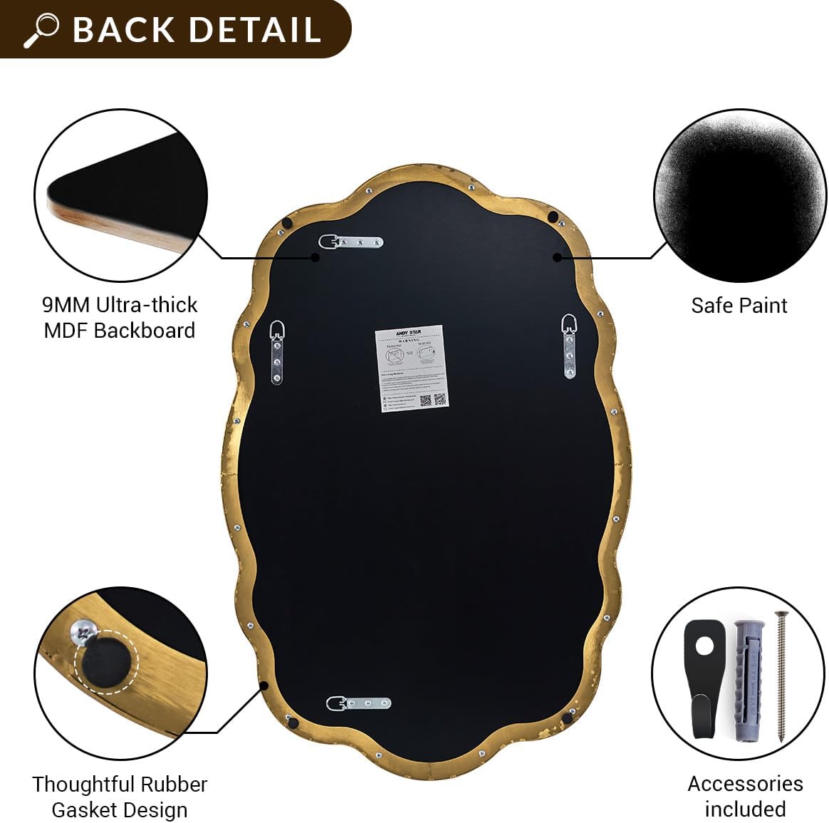 ANDY STAR Brushed Gold Scalloped Mirror - 22x30 Inch Bathroom Mirror, Vintage Oval Vanity Mirror, Rust-Proof Anti Rust Stainless Steel Wall Mount Horizontal or Vertical