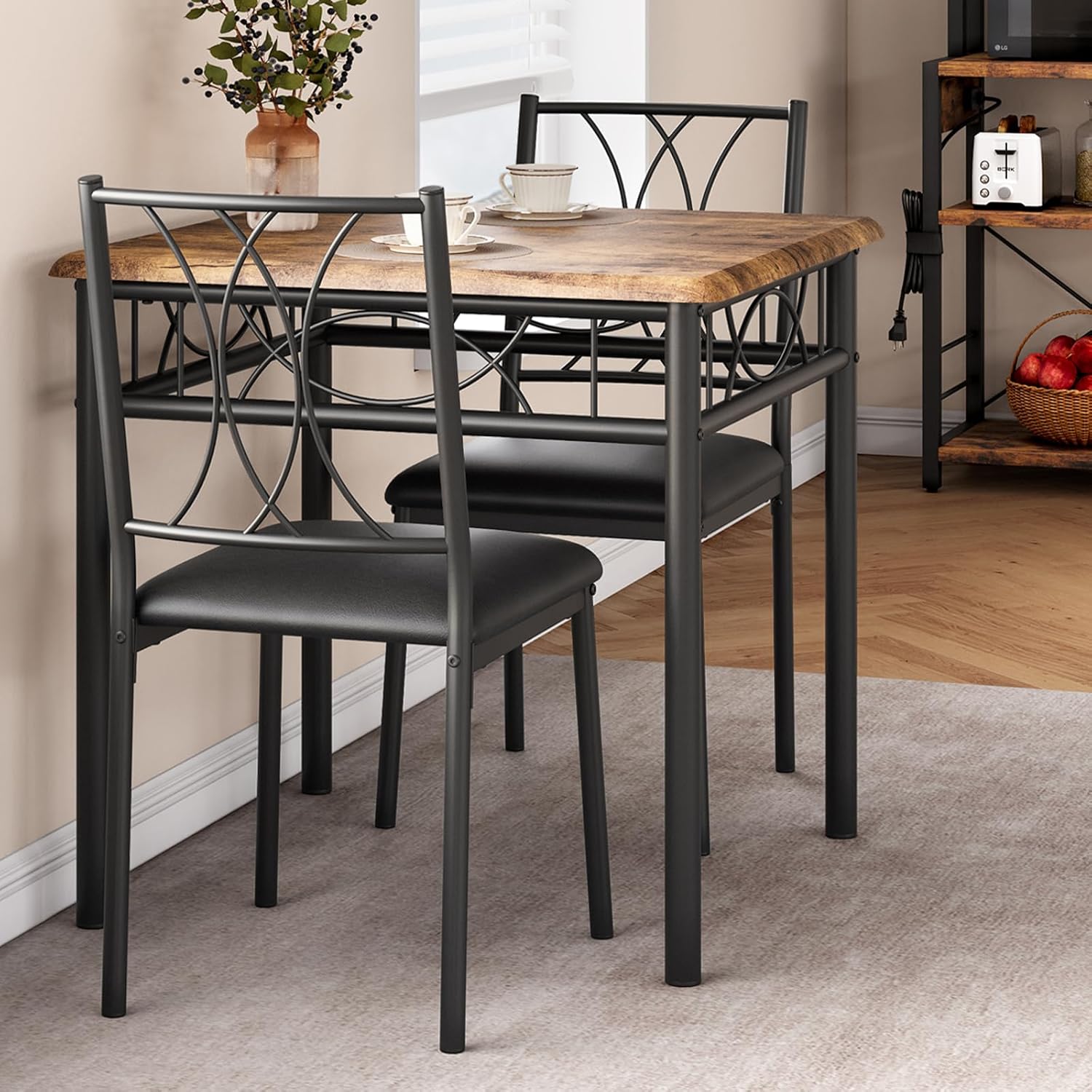 GarveeHome Small Dining Table Set for 2, Square Table and Chairs Set of 2, 3 Piece Kitchen Table Set of 2 with Upholstered Chairs, Dinner Table Set for 2 for Small Spaces, Apartment, Rustic Brown