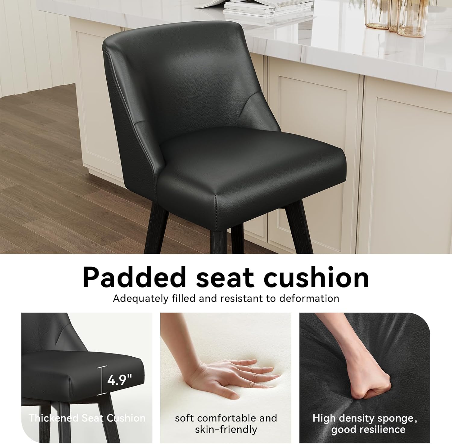 Vipbear Swivel Counter Height Bar Stools Set of 2,26.8" H Counter Stools with Back, Mid Century Modern Bar Stools for Kitchen Island,Faux Leather,Wooden Base, Black